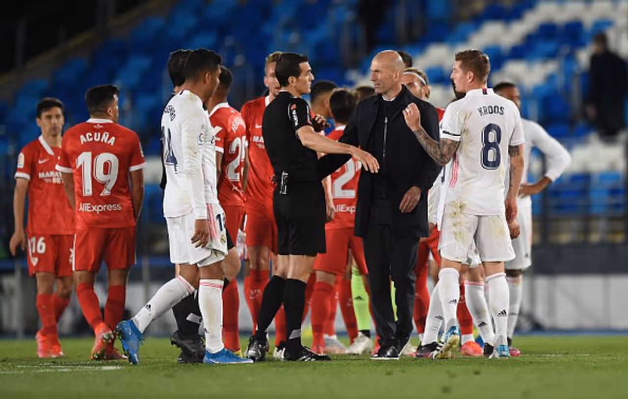 മാഡ്രിഡ്: സ്പാനിഷ് ലീഗിലെ നിർണായക മത്സരത്തിൽ റയൽ മാഡ്രിഡിനെ സമനിലയിൽ തളച്ച് സെവിയ്യ. ഇതോടെ അത്ലറ്റിക്കോ മാഡ്രിഡിനെ പിറകിലാക്കി ലാ ലീഗയിൽ ഒന്നാമതെത്താനുള്ള റയലിന്റെ അവസരം പാഴായി.