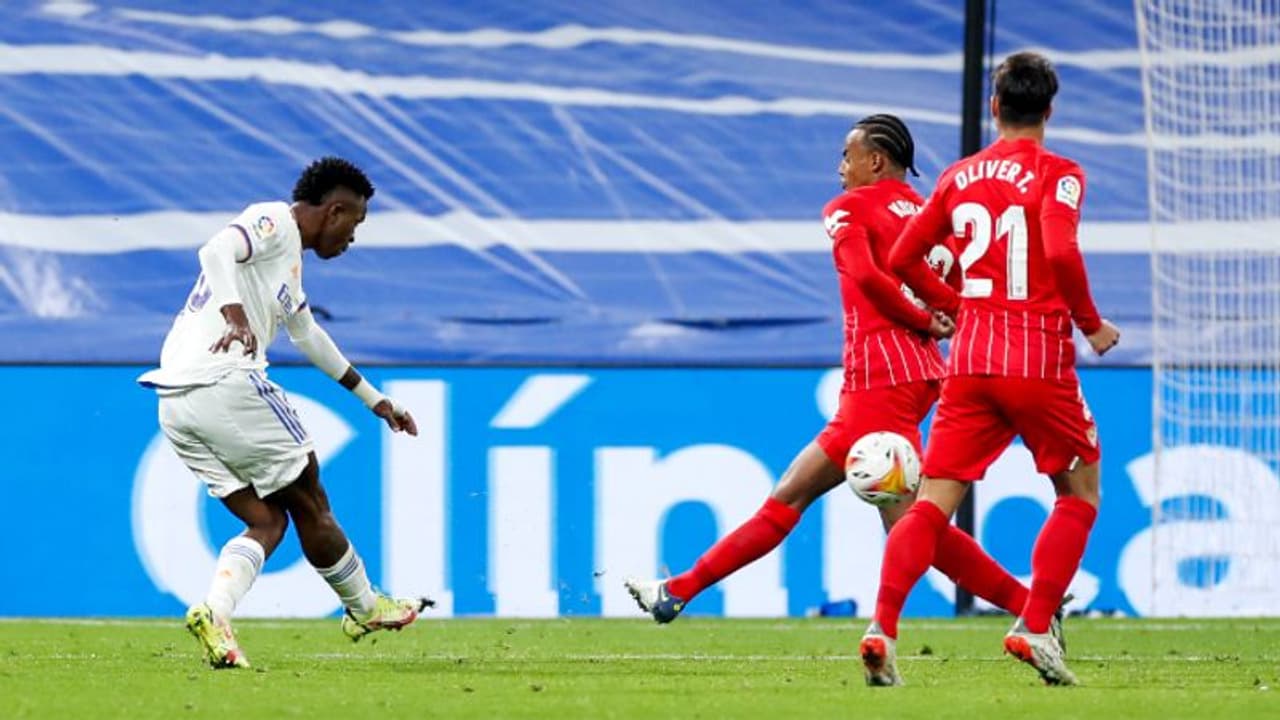 മാഡ്രിഡ്: ലാലിഗയിൽ(LaLiga) റയൽ മാഡ്രിഡിന്(Real Madrid) ജയം. സെവിയ്യയെ(Sevilla) ഒന്നിനെതിരെ രണ്ട് ഗോളുകൾക്ക് റയൽ പരാജയപ്പെടുത്തി. റയലിനായി കരിം ബെൻസെമയും(Karim Benzema) വിനീഷ്യസ് ജൂനിയറും(Vini Jr) ഗോൾ നേടിയപ്പോൾ റാഫ മീറാണ്(Rafa Mir) സെവിയ്യയുടെ ഗോൾ കണ്ടെത്തിയത്. 33 പോയിന്റുള്ള റയൽ ലീഗിൽ ഒന്നാം സ്ഥാനത്താണ്. 28 പോയിന്റുള്ള സെവിയ്യ നാലാം സ്ഥാനത്തും.