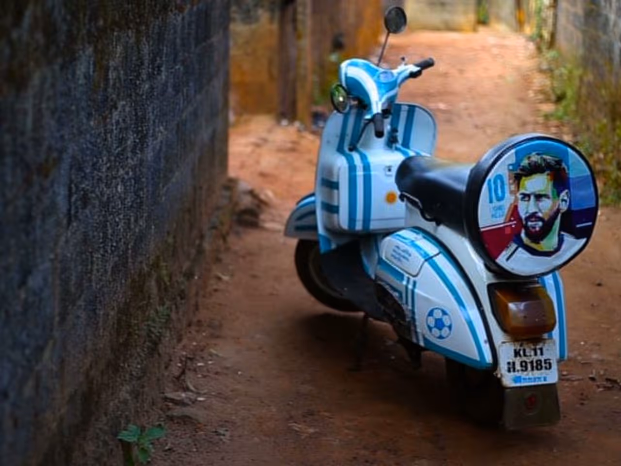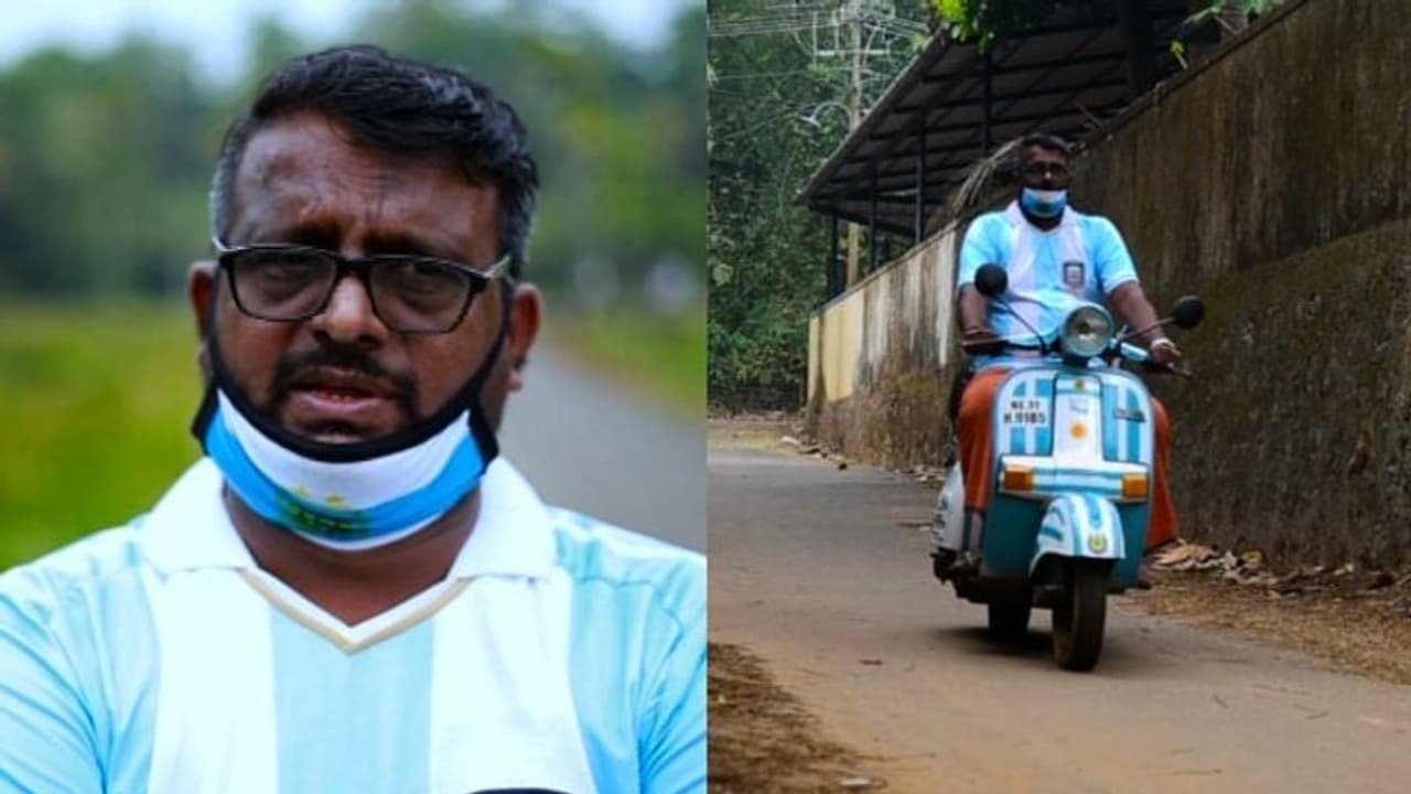 കാല്പ്പന്ത് കളിയുടെ ഇഷ്ടക്കാരനാണ് കടലുണ്ടി വട്ടപ്പറമ്പ് സ്വദേശി പ്രദീപ് കുമാര്. അതിനുമപ്പുറം അര്ജന്റീന ഫുട്ബോളിന്റെ ആരാധകന്. മിക്ക ദിവസങ്ങളിലും അര്ജന്റീനയുടെ ജഴ്സി അണിഞ്ഞ് നടക്കുന്നയാള്. പ്രദീപിന്റെ സ്കൂട്ടര് അര്ജന്റീന പതാകയുടെ നിറമായ ഇളം നീലയും വെള്ളയും ആക്കിയിട്ട് കാലങ്ങളായി. 2002 മുതല് ഉപയോഗിച്ച സ്കൂട്ടറുകള്ക്കെല്ലാം ഇതേ നിറം.