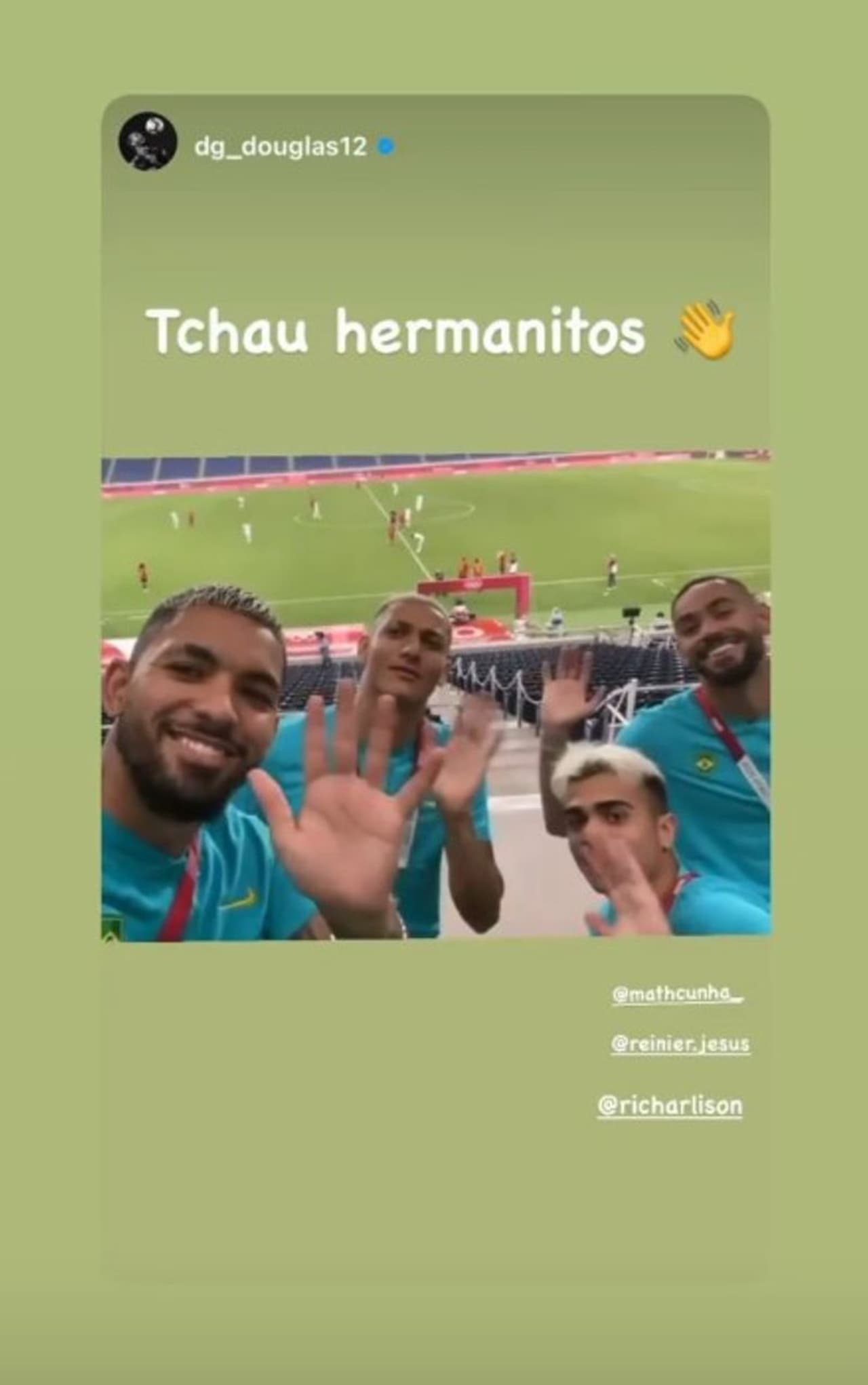 ഈ മത്സരം കാണാന് ബ്രസീലിയന് താരങ്ങളും സ്റ്റേഡിയത്തിലുണ്ടായിരുന്നു. ഈ അവസരം അവസാനിച്ചതിന് പിന്നാലെ റിച്ചാലിസണ് സഹതാരങ്ങളുമൊത്ത് സെല്ഫിയെടുത്ത് ഇന്സ്റ്റഗ്രാം സ്റ്റോറിയാക്കി. അര്ജന്റീന താരങ്ങള് മടങ്ങുന്നത് സെല്ഫിയില് കാണാമായിരുന്നു. സ്റ്റോറിയില് ''കുട്ടി സഹോദരങ്ങള്ക്ക് വിട'' എന്നും കുറിച്ചിട്ടിരുന്നു.