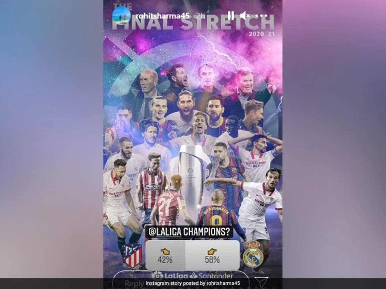 മുംബൈ: സ്പാനിഷ് ഫുട്ബോള് ലീഗായ ലാ ലിഗയില് ആര് കിരീടം നേടും ?,. ആരാധകരോട് ചോദ്യവുമായി എത്തിയിരിക്കുകയാണ് ഇന്ത്യൻ ക്രിക്കറ്റ് ടീം വൈസ് ക്യാപ്റ്റൻ രോഹിത് ശർമ. ലാ ലിഗയുടെ കടുത്ത ആരാധകനും ഇന്ത്യയിലെ ബ്രാൻഡ് അംബാസിഡറുമാണ് രോഹിത്. ഇൻസ്റ്റഗ്രാം സ്റ്റോറിയിലാണ് ആരാധകർക്ക് മുന്നിൽ വോട്ടെടുപ്പിന് ആഹ്വാനം ചെയ്തുള്ള പോസ്റ്റ്.