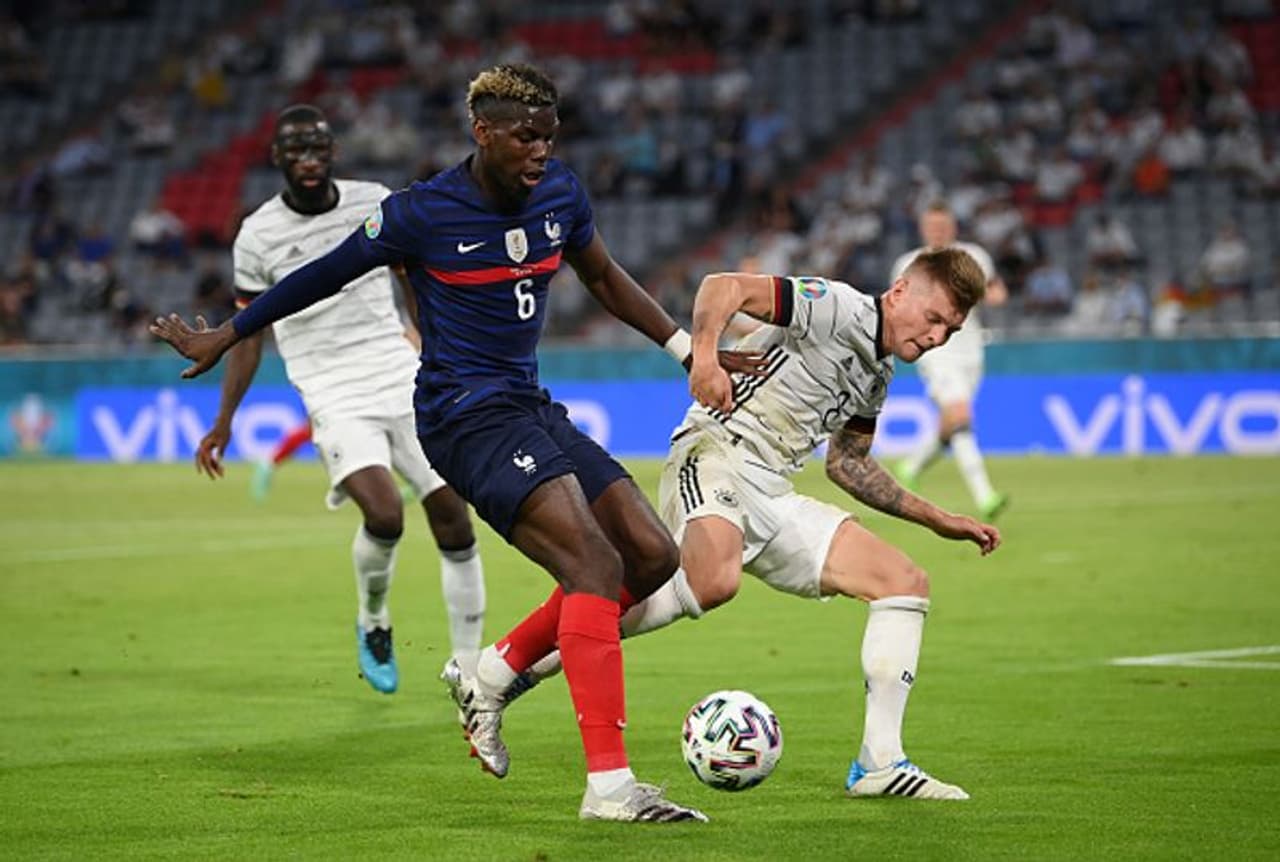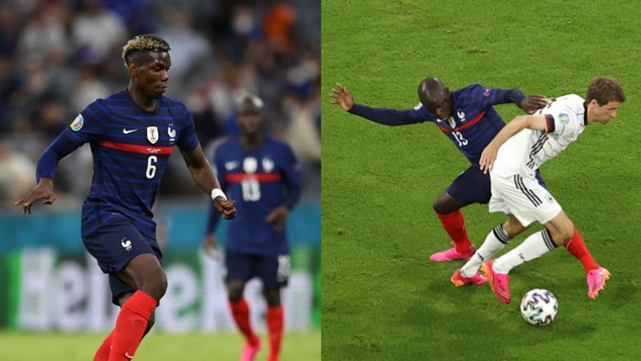 മ്യൂണിക്ക്: യൂറോ കപ്പില് ജര്മനിക്കെതിരായ ജയത്തോടെ ഫ്രാൻസ് ജേഴ്സിയിൽ പോള് പോഗ്ബയും എൻഗോളോ കാന്റെയും ശ്രദ്ധേയ നേട്ടത്തില്. ഇരുവരും ഒന്നിച്ച് ഫ്രാൻസിനായി ആദ്യ ഇലവനിൽ ഇറങ്ങിയ കളികളില് ഇരുപത്തിയെട്ടാമത്തെ മത്സരമാണ് അജയ്യമായി മുന്നേറുന്നത്. 22 കളിയിൽ ജയവും ആറ് സമനിലയുമായിരുന്നു ഫലം. ജർമനിക്കെതിരായ മത്സരത്തിൽ മധ്യനിരയില് കളംനിറഞ്ഞ പോഗ്ബയായിരുന്നു മികച്ച താരമായി തെരഞ്ഞെടുക്കപ്പെട്ടത്.