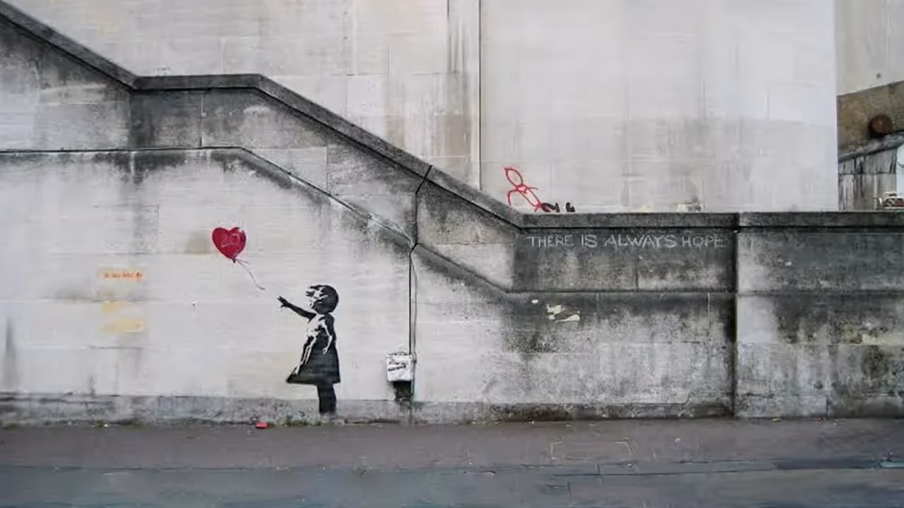 ബാൻസ്കിയുടെ ഏറ്റവും പ്രശസ്തമായ ചിത്രം. ഒരു ചെറിയ പെൺകുട്ടി ഹൃദയാകൃതിയിലുള്ള ചുവന്ന ബലൂണിനായി കൈനീട്ടുന്ന ഈ ചിത്രം 'പ്രതീക്ഷ'യുടെ പ്രതീകമാണ്.