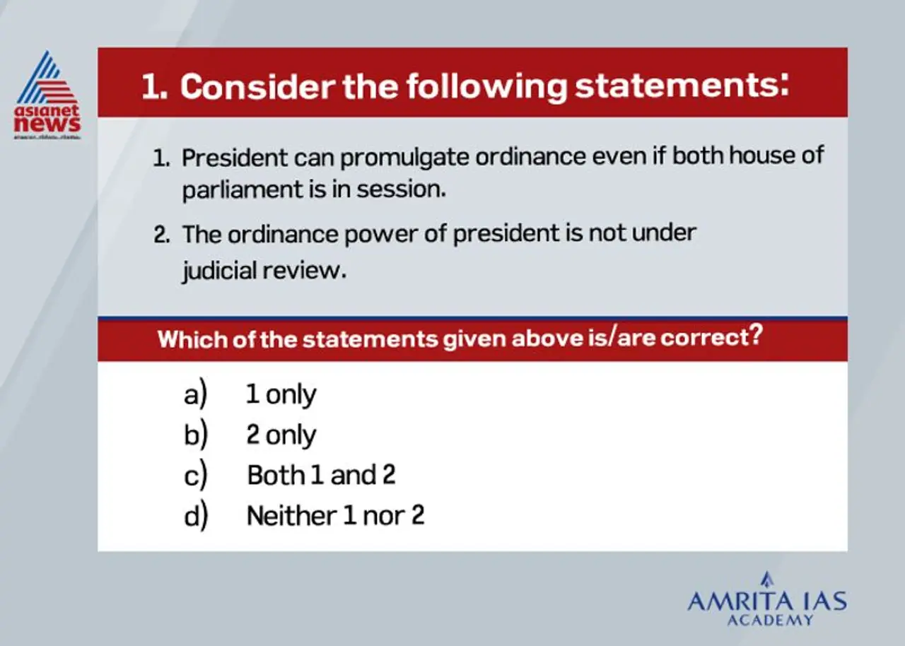 ഇന്ത്യന് ബ്യൂറോക്രസിയുടെ ഏറ്റവും ഉയര്ന്ന പദവികളിലേക്കുള്ള പരീക്ഷയായ സിവില് സര്വ്വീസ് പരീക്ഷയ്ക്കായി ഏഷ്യാനെറ്റ് ഓണ്ലൈനും അമൃത ഐഎഎസ് അക്കാദമിയും ചേര്ന്നൊരുക്കുന്ന ചോദ്യമാതൃകയുടെ ഏഴാം ഭാഗം.