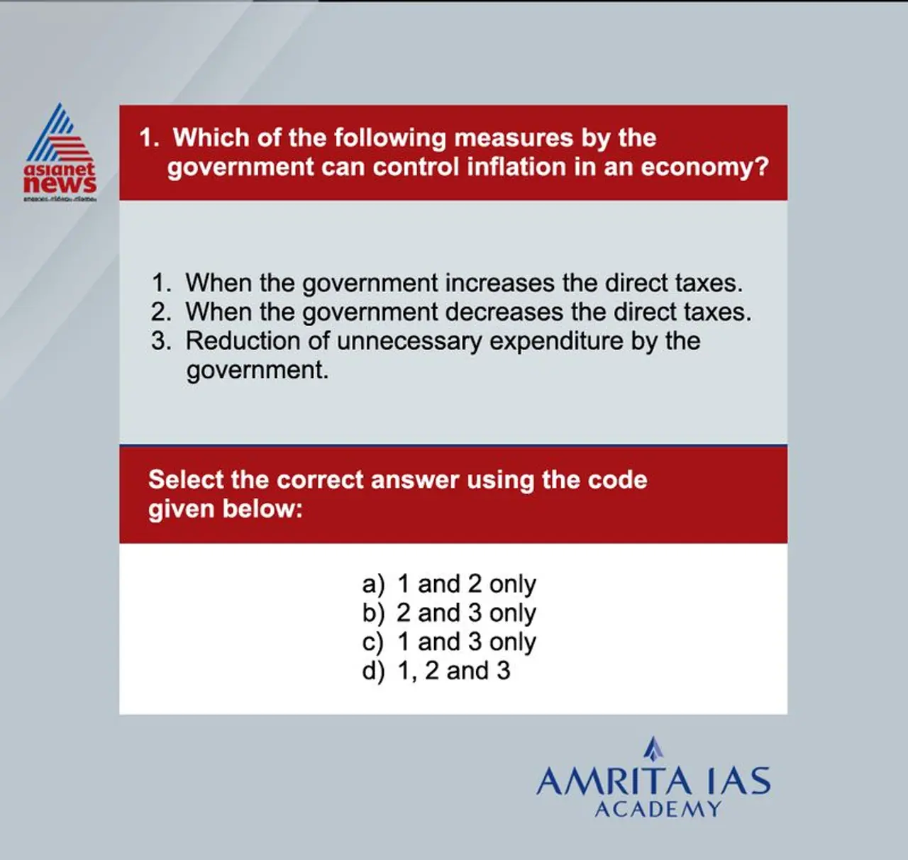 Civil Service Exam: സമ്പദ്വ്യവസ്ഥയിലെ പണപ്പെരുപ്പം നിയന്ത്രിക്കാൻ സർക്കാര് കൈക്കൊള്ളുന്ന നടപടികള് ?