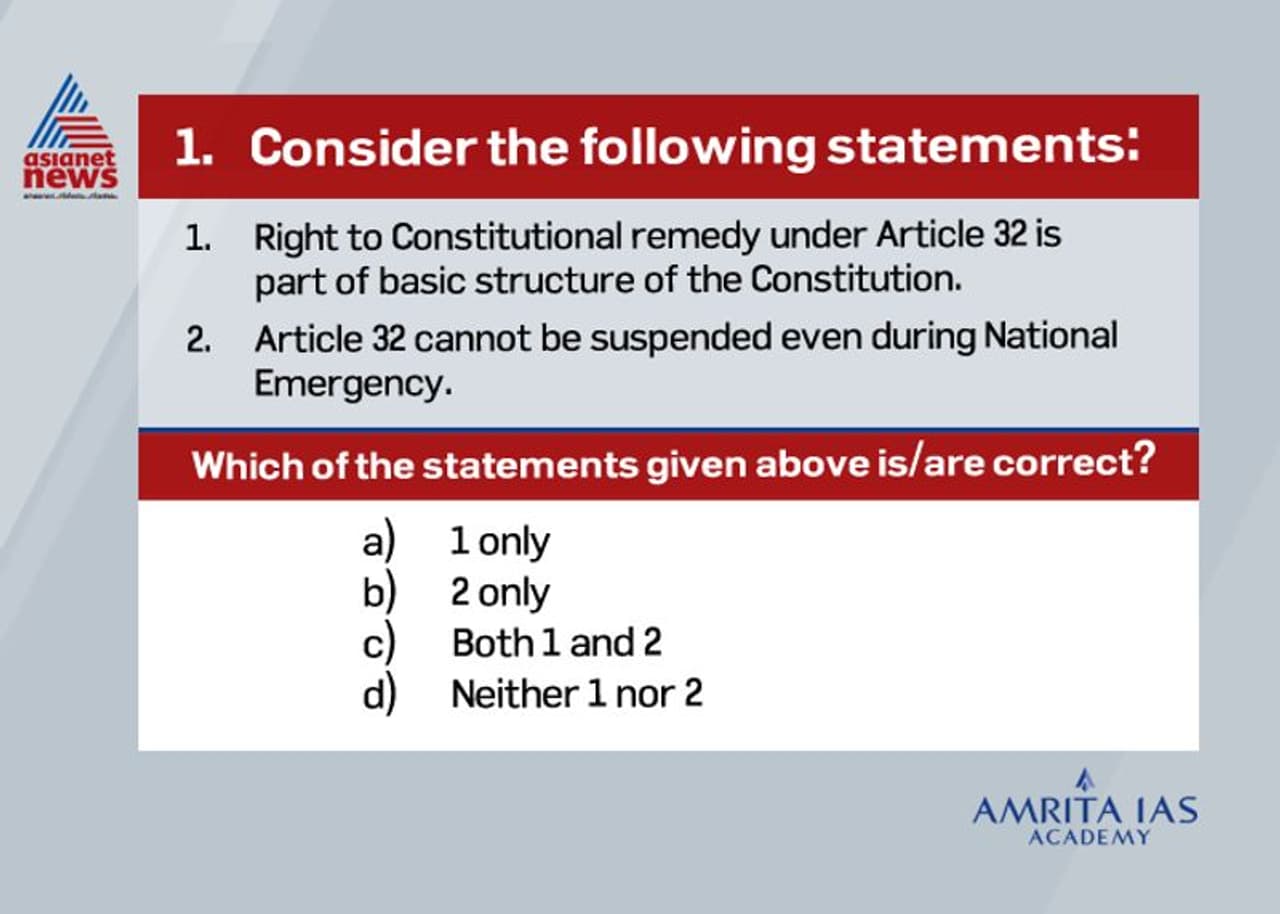 ഇന്ത്യന് ബ്യൂറോക്രസിയുടെ ഏറ്റവും ഉയര്ന്ന പദവികളിലേക്കുള്ള പരീക്ഷയായ സിവില് സര്വ്വീസ് പരീക്ഷയ്ക്കായി ഏഷ്യാനെറ്റ് ഓണ്ലൈനും അമൃത ഐഎഎസ് അക്കാദമിയും ചേര്ന്നൊരുക്കുന്ന ചോദ്യമാതൃകയുടെ നാല്പ്പത്തിനാലാം ഭാഗം.