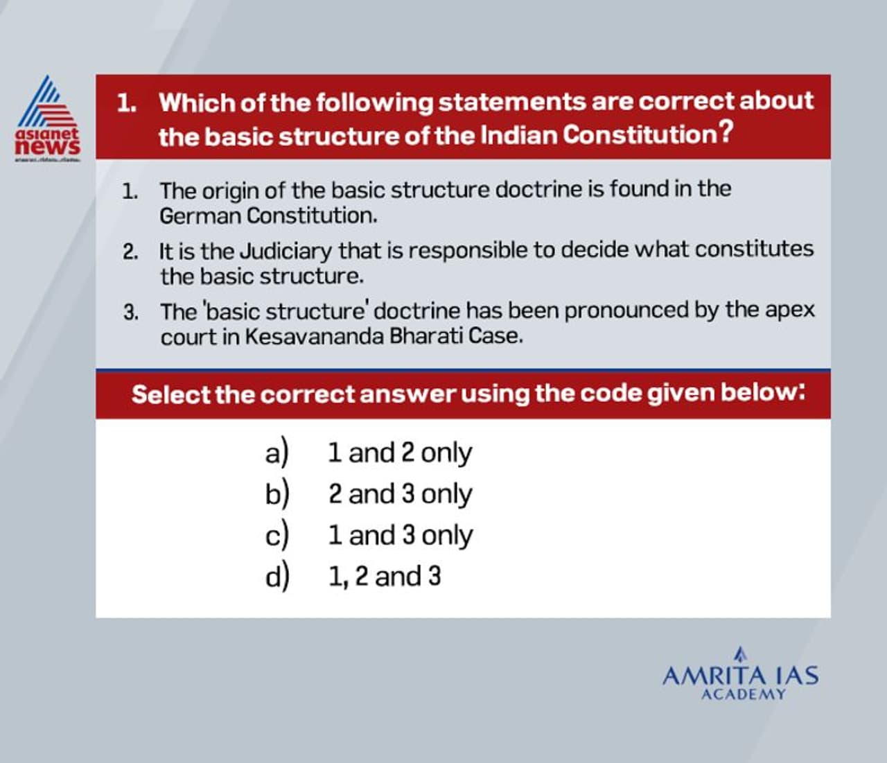 ഇന്ത്യന് ബ്യൂറോക്രസിയുടെ ഏറ്റവും ഉയര്ന്ന പദവികളിലേക്കുള്ള പരീക്ഷയായ സിവില് സര്വ്വീസ് പരീക്ഷയ്ക്കായി ഏഷ്യാനെറ്റ് ഓണ്ലൈനും അമൃത ഐഎഎസ് അക്കാദമിയും ചേര്ന്നൊരുക്കുന്ന ചോദ്യമാതൃകയുടെ അമ്പത്തഞ്ചാം ഭാഗം.