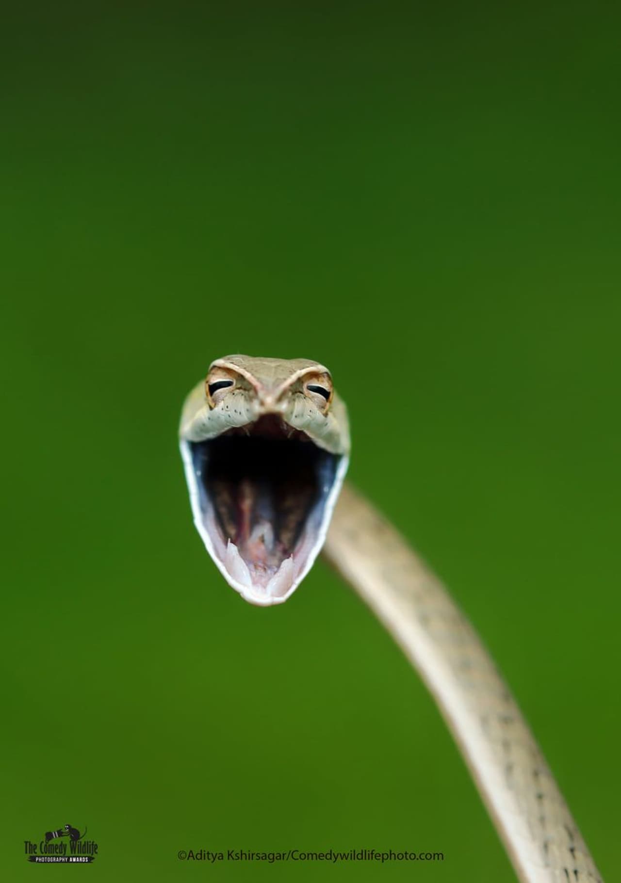 കോമഡി വൈൽഡ് ലൈഫ് ഫോട്ടോ അവാർഡുകൾ അതിന്റെ 2021 മത്സരത്തിനുള്ള അവസാന 42 ചിത്രങ്ങൾ വെളിപ്പെടുത്തി, അതിൽ ഇന്ത്യയിൽ നിന്ന് ചിരിക്കുന്ന മുന്തിരി പാമ്പ് ഉൾപ്പെടുന്നു. ഈ വർഷം, ലോകമെമ്പാടുമുള്ള 7,000 -ലധികം എൻട്രികളിൽ നിന്ന് ഫോട്ടോകൾ തിരഞ്ഞെടുത്തു. മാത്രമല്ല, എല്ലാ വർഷവും കോമഡി വൈൽഡ്ലൈഫ് ഫോട്ടോഗ്രാഫി അവാർഡുകൾ വ്യത്യസ്തമായ ജീവകാരുണ്യ പ്രവർത്തനങ്ങളെ പിന്തുണയ്ക്കുന്നു, ഇത്തവണ ഇത് വന്യമായ ഒറംഗുട്ടൻമാരെ സംരക്ഷിക്കുന്നതിനുള്ള ഒരു പ്രസ്ഥാനമാണ് ഗുനുങ് പലങ്ങ് ഒറംഗുട്ടൻ പ്രോജക്റ്റ്. ഈ ഫോട്ടോഗ്രാഫി അവാർഡുകൾ അവരുടെ സ്വാഭാവിക ആവാസവ്യവസ്ഥയിൽ പതിവുപോലെ മൃഗങ്ങളുടെ രസകരമായ നിരവധി ഫോട്ടോകൾ കണ്ടു . ചിരിക്കുന്ന പാമ്പും ഗംഭീരമായ ചാമിലിയനും മുതൽ ജെന്റൂ പെൻഗ്വിനുകളും നൃത്തം ചെയ്യുന്ന കംഗാരുക്കളും വരെ, മത്സരത്തിൽ നിങ്ങളെ ചിരിപ്പിക്കാൻ രസകരമായ നിരവധി മൃഗ ചിത്രങ്ങൾ ഉണ്ട്. വന്യജീവി ഫോട്ടോഗ്രാഫിയുടെ നേരിയ വശങ്ങളിൽ ശ്രദ്ധ കേന്ദ്രീകരിക്കുന്ന ഒരു മത്സരം സൃഷ്ടിക്കാനും നർമ്മത്തിലൂടെ വന്യജീവി സംരക്ഷണത്തെ പ്രോത്സാഹിപ്പിക്കാനും ലക്ഷ്യമിടുന്നു. 2015-ലാണ് ആദ്യമായി കോമഡി വൈൽഡ് ലൈഫ് ഫോട്ടോഗ്രാഫി അവാർഡുകൾ തുടങ്ങുന്നത്. പോൾ ജോൺസൺ-ഹിക്സ് എംബിഇ, ടോം സുല്ലം എന്നിവരുടെ നേതൃത്വത്തിലാണ് ഈ മത്സരങ്ങള് സംഘടിപ്പിക്കപ്പെട്ടത്.