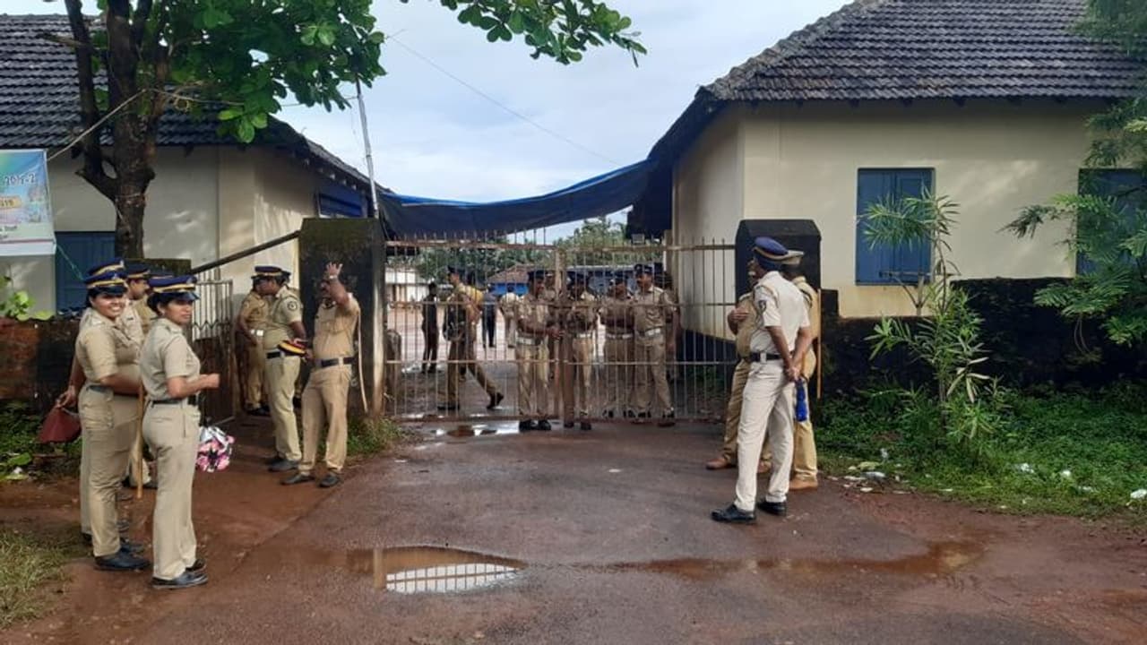 മഞ്ചേശ്വരം പൈവളിഗെ വോട്ടെണ്ണല് കേന്ദ്രത്തില് സുരക്ഷയൊരുക്കി നില്ക്കുന്ന പൊലീസ്.