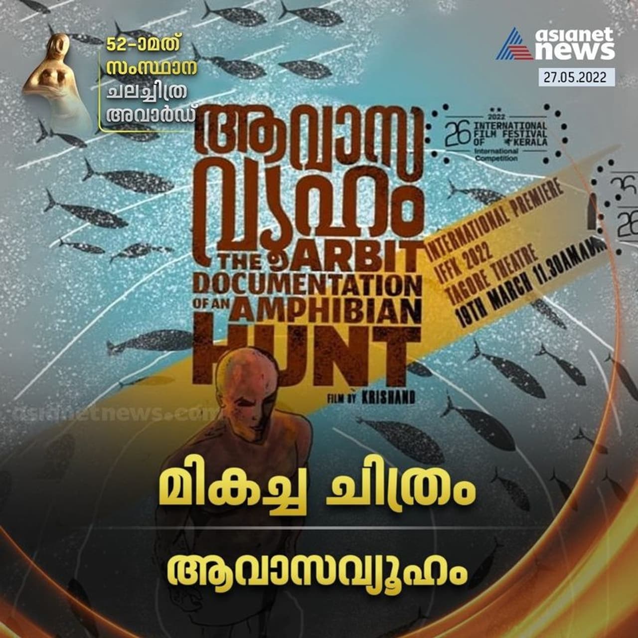 മികച്ച സിനിമയായി ആവാസവ്യൂഹം: കൃഷാന്ദ് ആർ.കെ സംവിധാനം ചെയ്ത ആവാസവ്യൂഹമാണ് 2021 -ലെ മികച്ച ചിത്രം. പേര് സൂചിപ്പിക്കുന്നത് പോലെ തന്നെ പരിസ്ഥിതി പ്രശ്നം തന്നെയാണ് സിനിമ ചർച്ച ചെയ്യുന്നത്. ആവാസവ്യവസ്ഥയുടെ പതനമാണ് സിനിമ പ്രമേയമായി കൈകാര്യം ചെയ്യുന്നത്. കല എന്ന തലത്തിൽ മികച്ച ദൃശ്യാനുഭവവുമാണ് ആവാസവ്യൂഹം എന്ന് ജൂറി തന്നെ വിലയിരുത്തുന്നു.