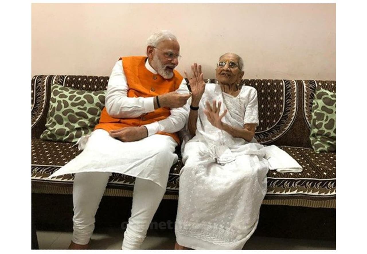 അമ്മയോട് കുശലം പറഞ്ഞ് കാല്തൊട്ട് വണങ്ങി 'പിറന്നാള് കുട്ടി'യായി മോദി
