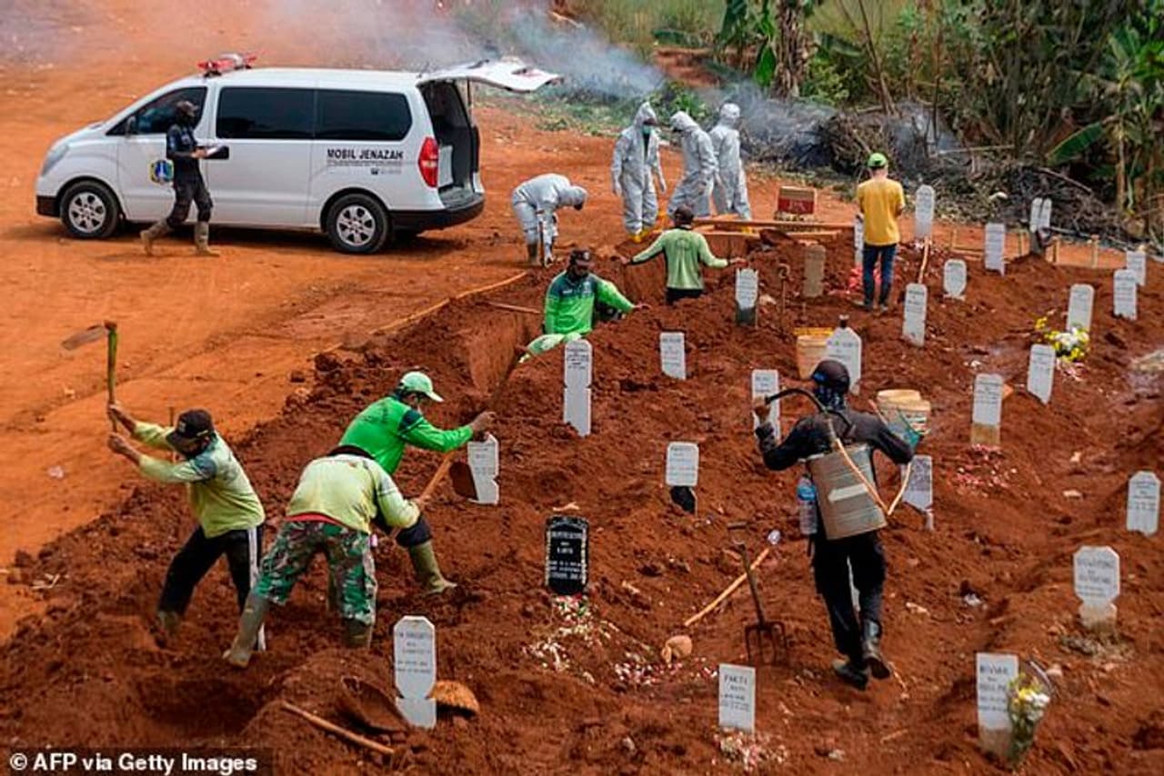 ഇനി ജാവയിൽ മാസ്ക് ധരിക്കാത്തതിന് പിടിക്കപ്പെടുന്ന യുവാക്കൾക്കുള്ള ശിക്ഷ കൊവിഡ് ബാധിച്ച് മരിക്കുന്നവർക്കുള്ള ശവക്കുഴി വെട്ടൽ ആണ്. ഇത്തരത്തിൽ പൊലീസ് കസ്റ്റഡിയിലെടുത്ത എട്ടു യുവാക്കൾക്ക്, ങാബെറ്റാൻ ഗ്രാമത്തിലെ പൊതുശ്മശാനത്തിൽ വെച്ച് ഇതിനകം ഈ ശിക്ഷ നടപ്പിലാക്കിക്കഴിഞ്ഞിട്ടുണ്ട്.