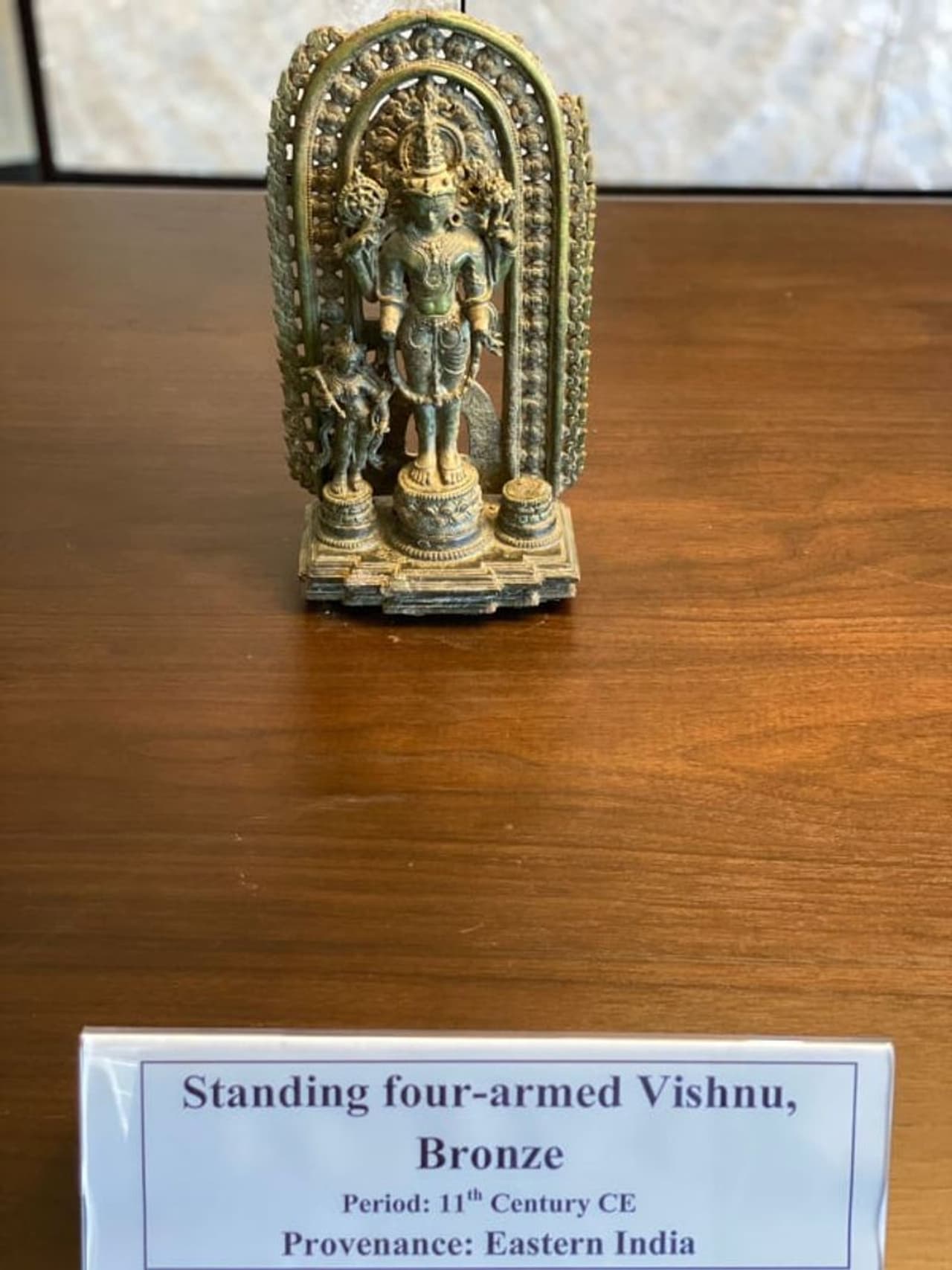 157 പുരാവസ്തുക്കളുടെ പട്ടികയില് പത്താം നൂറ്റാണ്ടില് മണല്ക്കല്ലില് തീര്ത്ത രേവന്തയുടെ 8.5 സെന്റിമീറ്റര് വരെ പ്രതിമ, 12 ാം നൂറ്റാണ്ടിലെ അതിമനോഹരമായ നടരാജ വെങ്കല പ്രതിമ എന്നിവയും ഉള്പ്പെടുന്നു. കൂടുതല് ശേഖരങ്ങള് 11-14 നൂറ്റാണ്ടിലേതാണ്.