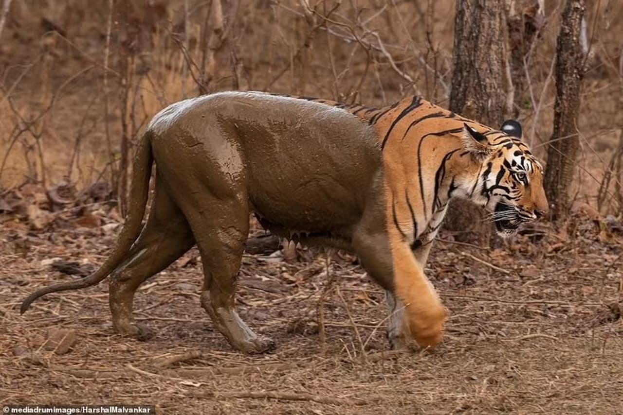 'മഡ് ബാത്ത്' കഴിഞ്ഞിറങ്ങിയ കടുവ