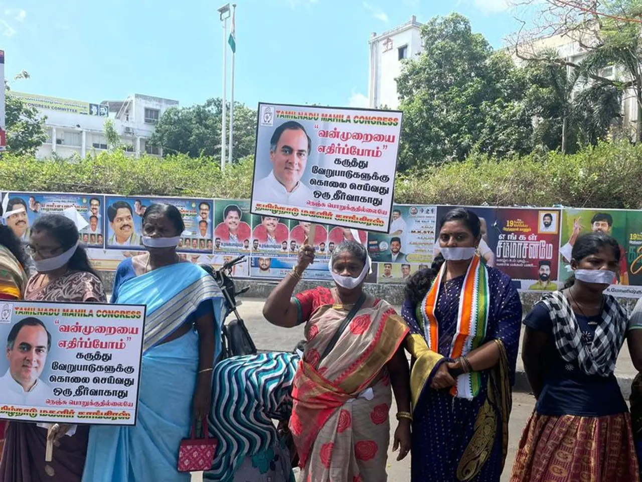 സുപ്രീം കോടതി വിധിയെ വിമർശിക്കാൻ കോൺഗ്രസ് ആഗ്രഹിക്കുന്നില്ലെന്ന് ടിഎൻസിസി അധ്യക്ഷൻ കെഎസ് അഴഗിരി പറയുന്നുണ്ടെങ്കിലും ഇന്ന് നിശബ്ദ പ്രതിഷേധം നടത്താൻ പാർട്ടി പ്രവർത്തകരോട് അദ്ദേഹം ആഹ്വാനം ചെയ്തു. "ഞങ്ങൾ തീവ്രവാദത്തെ എതിർക്കുന്നു" എന്ന് എഴുതിയ പ്ലക്കാർഡുകളും പ്രവര്ത്തകര് പിടിച്ചിട്ടുണ്ട്. അഭിപ്രായവ്യത്യാസങ്ങൾക്ക് ഒരു വ്യക്തിയെ കൊലപ്പെടുത്തുന്നത് ഒന്നിനും പരിഹാരമാകില്ല.