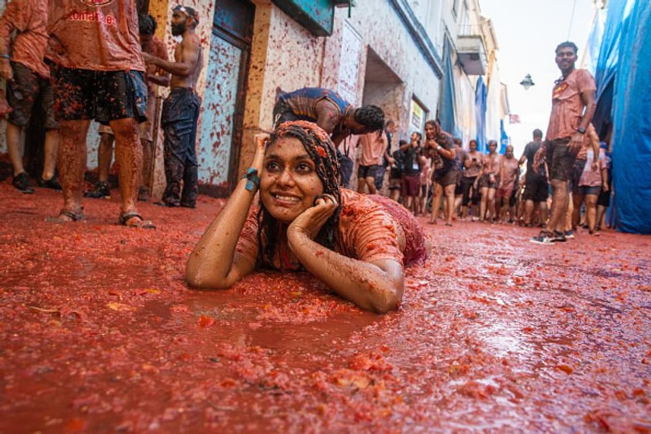 ഉത്സവത്തിന്റെ ഭാഗമായി ആയിരക്കണക്കിനാളുകള് പരസ്പരം തക്കാളി വാരിയെറിഞ്ഞു. ഒടുവില് ഉത്സവം കഴിഞ്ഞപ്പോഴേക്കും തെരുവുകളില് തക്കാളി ചുവപ്പ് നിറഞ്ഞു.