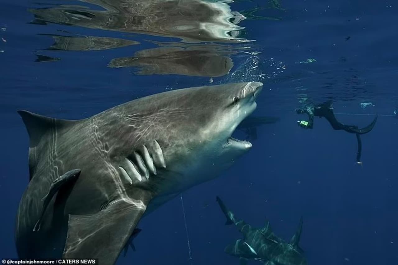ഫ്ലോറിഡ തീരത്ത് സമുദ്രാന്തര് ചിത്രങ്ങള് ചിത്രങ്ങള് പകര്ത്തുകയായിരുന്നു ജോൺ മൂര്. സമീപത്തായി നിരവധി ചെറു സ്രാവുകള് നീന്തുന്നുണ്ടായിരുന്നു. അവയുടെ ചിത്രങ്ങള് പകര്ത്തുന്നതിനിടെയാണ് പെട്ടെന്ന് അസാധാരണ വലിപ്പമുള്ള ഒരു പെണ്സ്രാവ് ജോണിന്റെ സമീപത്തേക്കായി വന്നത്.