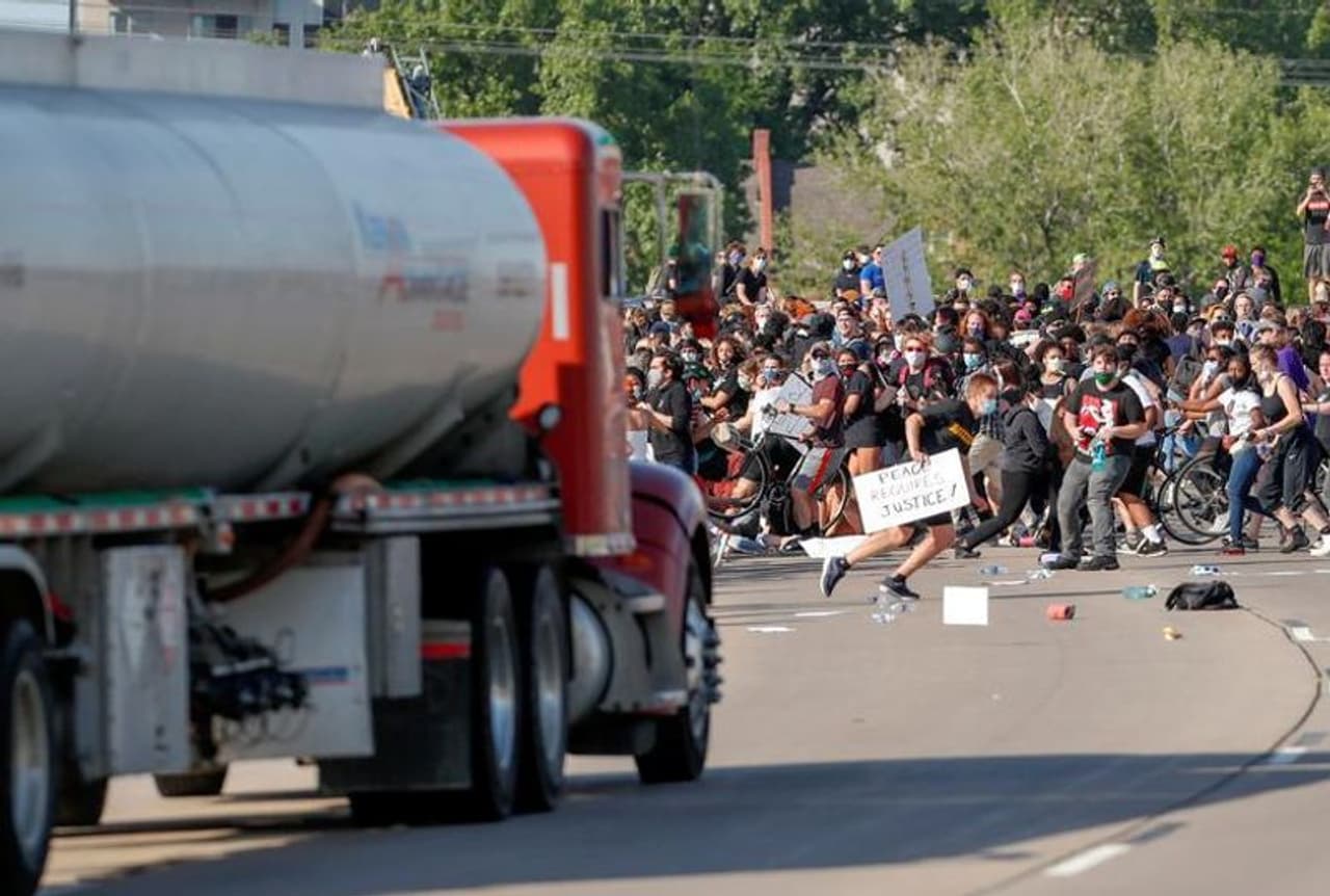 മിനിപൊളീസ് 35ഡബ്ല്യു നോർത്ത്ബൗണ്ട് ഹൈവേയിൽ സമാധാനപരമായി പ്രതിഷേധിക്കുന്ന ആയിരങ്ങൾക്കിടയിലേക്ക് പാഞ്ഞുകയറി ടാങ്കർ ലോറി.