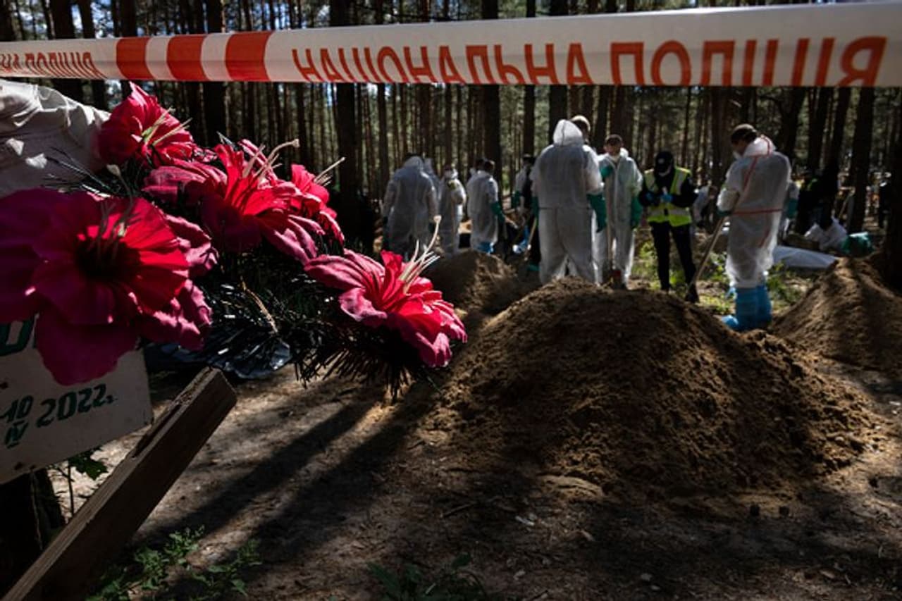 ഖാർകിവ് മേഖലയിലെ ഇസിയൂമിൽ നിന്ന് കണ്ടെത്തിയ കൂട്ടകുഴിമാടങ്ങളില് അടക്കം ചെയ്ത മൃതദേഹങ്ങളെല്ലാം തന്നെ കൊടിയ പീഡനത്തിന് ഇരകളാക്കപ്പെട്ട ആളുകളുടെ ആണെന്നതിന് ശക്തമായ തെളിവ് ലഭിച്ചതായി യുക്രൈന് പ്രസിഡന്റ് വോളോഡിമർ സെലെൻസ്കി പറഞ്ഞു. അന്താരാഷ്ട്രാ കോടതിയില് ഹാജരാക്കുന്നതിനായി യുക്രൈന് സൈന്യം കൂടുതല് തെളിവ് ശേഖരിക്കുകയാണ്. ഇര്പിനിടെ കൂട്ടകുഴിമാടം കണ്ടെത്തിയതിന് പിന്നാലെ റഷ്യയെ കുറ്റവിചാരണ ചെയ്യണമെന്ന ആവശ്യം അന്താരാഷ്ട്രാതലത്തില് ശക്തമായി.