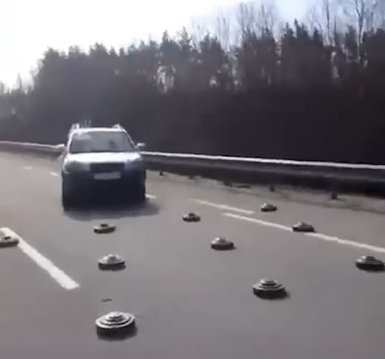വൃത്താകാരത്തിലുള്ള വലിയ വലിപ്പമില്ലാത്ത തരം കുഴിബോംബുകളാണ് റോഡില് നിരത്തിയിരിക്കുന്നത്. യുക്രൈന് അധിനിവേശത്തിനായി റഷ്യൻ സൈന്യം നിരോധിത പേഴ്സണൽ മൈനുകൾ ഉപയോഗിച്ചതായി ഒരു മനുഷ്യാവകാശ സംഘം റിപ്പോർട്ട് ചെയ്തതിന് പിന്നാലെയാണ് വീഡിയോ പ്രത്യക്ഷപ്പെട്ടത്.