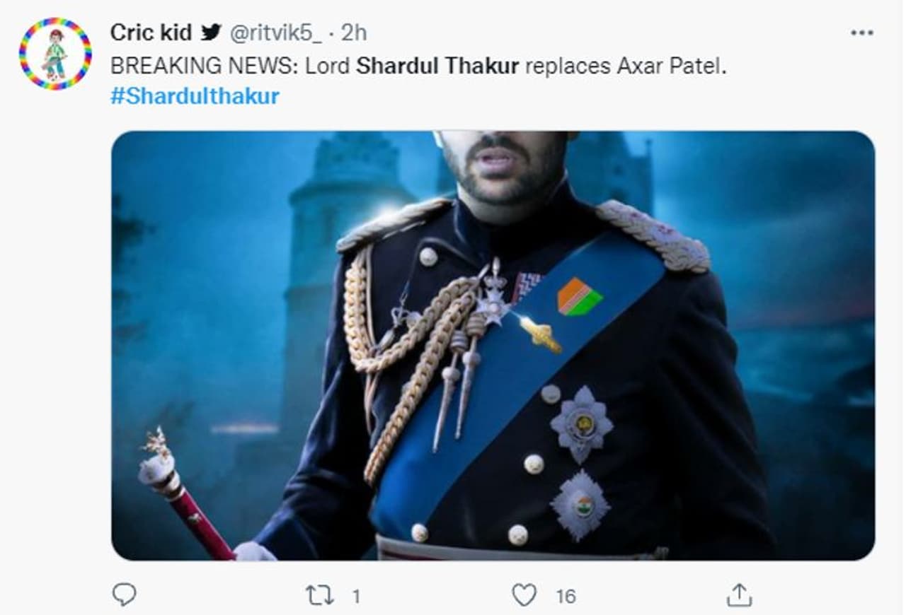 ടി20 ലോകകപ്പ് ടീമിലെത്തിയ ശേഷം 'ലോര്ഡ് ഷര്ദ്ദുല്' എന്ന വിശേഷണത്തോടെയാണ് താരത്തെ ആരാധകര് വരവേറ്റത്. ഇത്തരം നിരവധി ട്വീറ്റുകള് കാണാം.