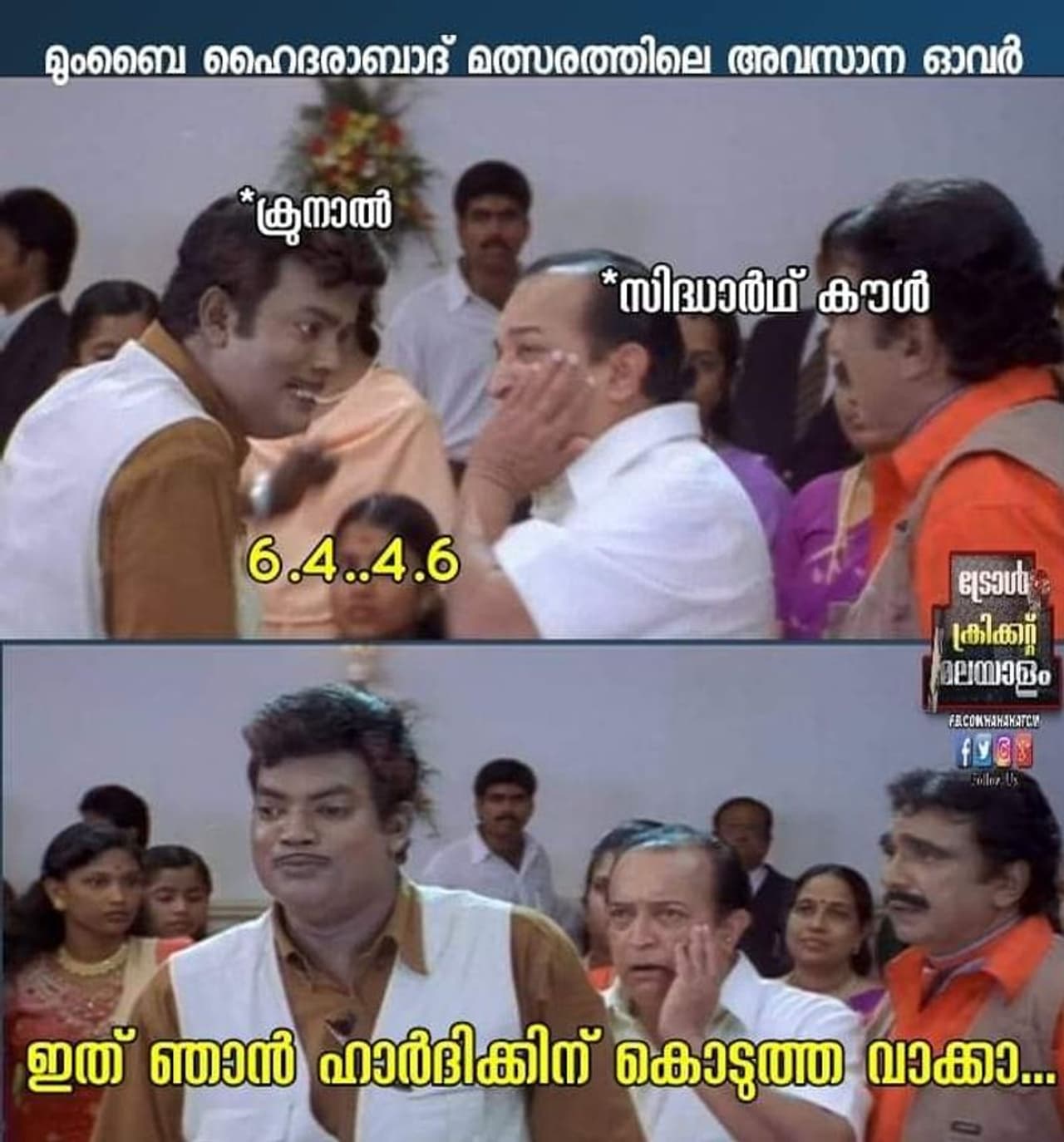 എന്നാല് അവസാന നാല് പന്തില് കഥമാറി. 20 റണ്സാണ് ക്രുനാല് പാണ്ഡ്യ അടിച്ചെടുത്തത്. അനിയനെ പുറത്താക്കിയതിനുള്ള ചേട്ടന്റെ പ്രതികാരമെണ് ട്രോളര്മാര് പറയുന്നത്.
