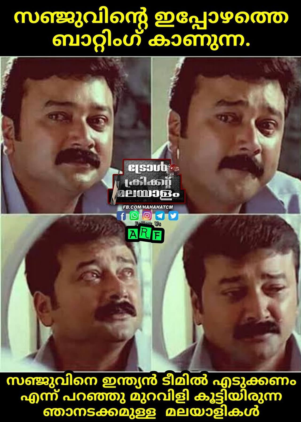 മലയാളി താരം സഞ്ജു സാംസണ് ഈ സീസണ് ഐപിഎല് എങ്ങനെ തുടങ്ങിയെന്നുള്ള ക്രിക്കറ്റ് ആരാധകര് മറക്കാനിടയില്ല. ആദ്യ രണ്ട് മത്സരങ്ങളിള് തന്നെ 159 റണ്സാണ് താരം അടിച്ചെടുത്തത്. അതും 74 പന്തുകള് മാത്രം നേരിട്ടുകൊണ്ട്. എന്നാല് പിന്നീടുള്ള എട്ട് മത്സരങ്ങളില് സഞ്ജുവിന് നേടാനായത് വെറും 77 റണ്സ് മാത്രം. 76 പന്തുകള് താരം നേരിട്ടു. ഇതില് ആറ് തവണ രണ്ടക്കം കാണാതെ പുറത്തായി. ഇന്നലെ ചെന്നൈ സൂപ്പര് കിംഗ്സിനെതിരെ റണ്സൊന്നുമെടുക്കാതെയാണ് സഞ്ജു മടങ്ങിയത്. പതിവുപോലെ സോഷ്യല് മീഡിയയില് ട്രോളുകളും നിറഞ്ഞു. മോശം ഫോമില് കളിക്കുന്ന ചെന്നൈ സൂപ്പര് കിംഗ്സിന്റെ കേദാര് ജാദവുമായിട്ടൊക്കെയാണ് താരം താരതമ്യം ചെയ്യപ്പെടുന്നത്. ഇന്നലെ വിവിധ സോഷ്യല് മീഡിയില് ഗ്രൂപ്പുകളില് സഞ്ജുവിനെതിരെ വന്ന ചില ട്രോളുകള് കാണാം...