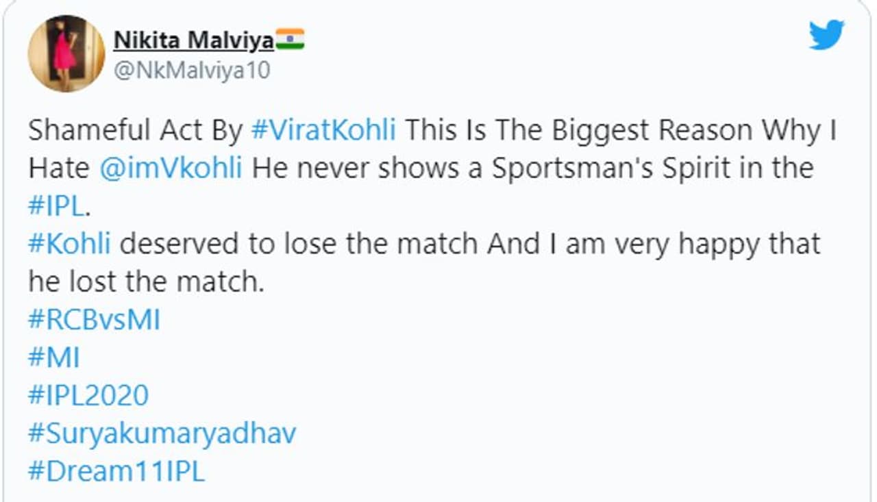 അബുദാബി: ഐപിഎല്ലില് മുംബൈ ഇന്ത്യന്സ് റോയല് ചലഞ്ചേഴ്സ് ബാംഗ്ലൂര് പോരാട്ടത്തിനിടെ മുബൈ താരം സൂര്യകുമാര് യാദവിനെ നോക്കി കണ്ണുരുട്ടിയ ബാംഗ്ലൂര് നായകന് വിരാട് കോലിക്കെതിരെ രൂക്ഷവിമര്ശനവുമായി ആരാധകര്. മത്സരത്തിന്റെ 13-ാം ഓവറിലായിരുന്നു വിവാദമായ സംഭവം.കവറിലേക്ക് പന്ത് തട്ടിയിട്ട സൂര്യകുമാര് ക്രീസില് നിന്നപ്പോള് പന്ത് കൈയിലെടുത്തശേഷം നടന്നുവന്ന കോലി സൂര്യകുമാറിനെ നോക്കി കണ്ണുരുട്ടുകയായിരുന്നു. ഏതാണ്ട് 15 സെക്കന്ഡോളം സൂര്യകുമാറിന്റെ മുഖത്തേക്ക് നോക്കി കോലി കണ്ണുരുട്ടിയെങ്കിലും ഒരു ഇഞ്ച് പോലും വിട്ടുകൊടുക്കാതെ സൂര്യുകുമാറും ക്രീസില് അചഞ്ചലനായി നിന്നു. വാക്പോരൊന്നിനും ഇരുവരും മുതിര്ന്നില്ലെങ്കിലും കോലിയുടെ നടപടി ആരാധകര്ക്ക് അത്ര പിടിച്ചില്ല. അവര് രൂക്ഷമായ പ്രതികരണവുമായി രംഗത്തെത്തുകയും ചെയ്തു.
