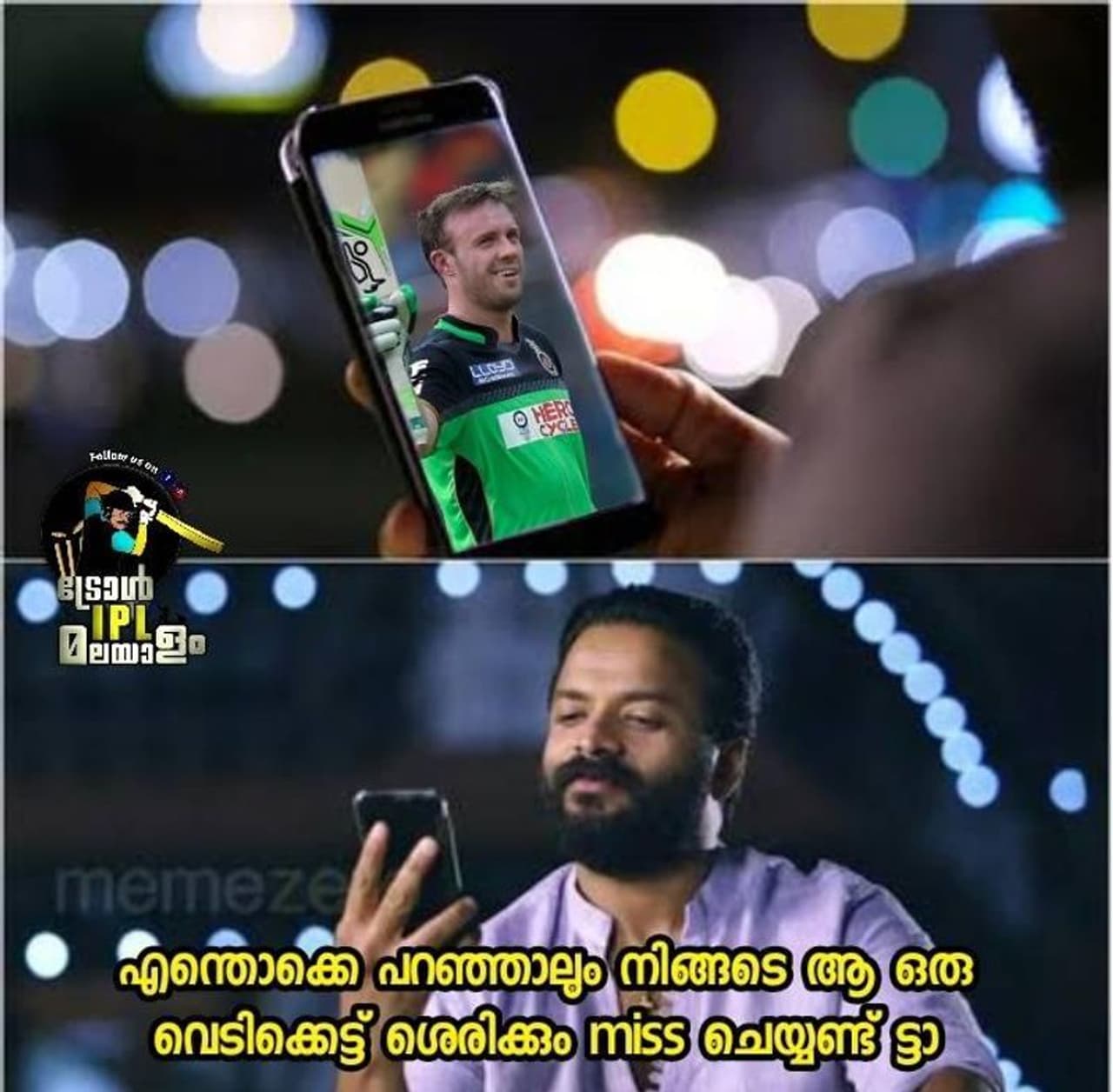 എബി ഡിവില്ലിയേഴ്സിന്റെ മോശം ഫോമും ഗ്ലെന് മാക്സ്വെല്ലിന്റെ തകര്പ്പന് പ്രകടനവും ഭരതിന്റെ അവസാന പന്തിലെ സിക്സും ട്രോളുകളായി പ്രചരിച്ചു.