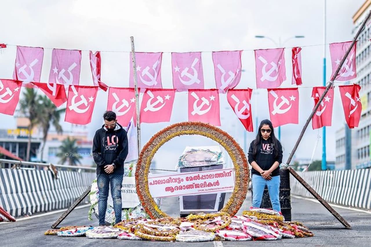 പാലരിവട്ടം പാലത്തില് നടത്തിയ ഫോട്ടോഷൂട്ട് ശ്രദ്ധേയമാകുന്നു. പാലറ്റ് മീഡിയ എന്ന പേജിലാണ്. വിവാഹങ്ങള്ക്ക് മുന്പ് നടത്താറുള്ള സേവ് ദ ഡേറ്റ് ഫോട്ടോഷൂട്ട് മോഡലില് 'സേവ് ദ ബ്രിഡ്ജ്' എന്ന പേരില് ചിത്രങ്ങള് പ്രത്യക്ഷപ്പെട്ടത്. 42 കോടി രൂപ ചെലവിട്ട് 100 വർഷത്തെ ഉപയോഗത്തിനായി നിർമ്മിച്ച പാലരിവട്ടം പാലം 2 വർഷം കൊണ്ട് ഉപയോഗശൂന്യമായ അവസ്ഥയാണ് ഉണ്ടായിരിക്കുന്നതെന്നാണ് കണ്ടെത്തിയത്. ഇതിന്റെ അറ്റകുറ്റപ്പണിക്ക് തന്നെ 18 കോടി വേണ്ടിവരും എന്നാണ് കണക്ക്. സച്ചിന് ദേവിക എന്നിവരാണ് തങ്ങളുടെ വിവാഹത്തിന്റെ മുന്നോടിയായി 'സേവ് ദ ബ്രിഡ്ജ്' എന്ന ഫോട്ടോഷൂട്ടിന് തയ്യാറായത്. അഴിമതി വ്യവസ്ഥയ്ക്കും, പാലത്തിന്റെ ഇപ്പോഴത്തെ അവസ്ഥയ്ക്ക് കാരണക്കാര്ക്കും ഇത് സമര്പ്പിക്കുന്നതായി ഇവര് പറയുന്നു. ചിത്രങ്ങള് ഇതിനകം ഒണ്ലൈനില് വൈറലായി കഴിഞ്ഞു. ചിത്രങ്ങള് കാണാം. ചിത്രങ്ങള് എടുത്തത് - Rahul V Raju