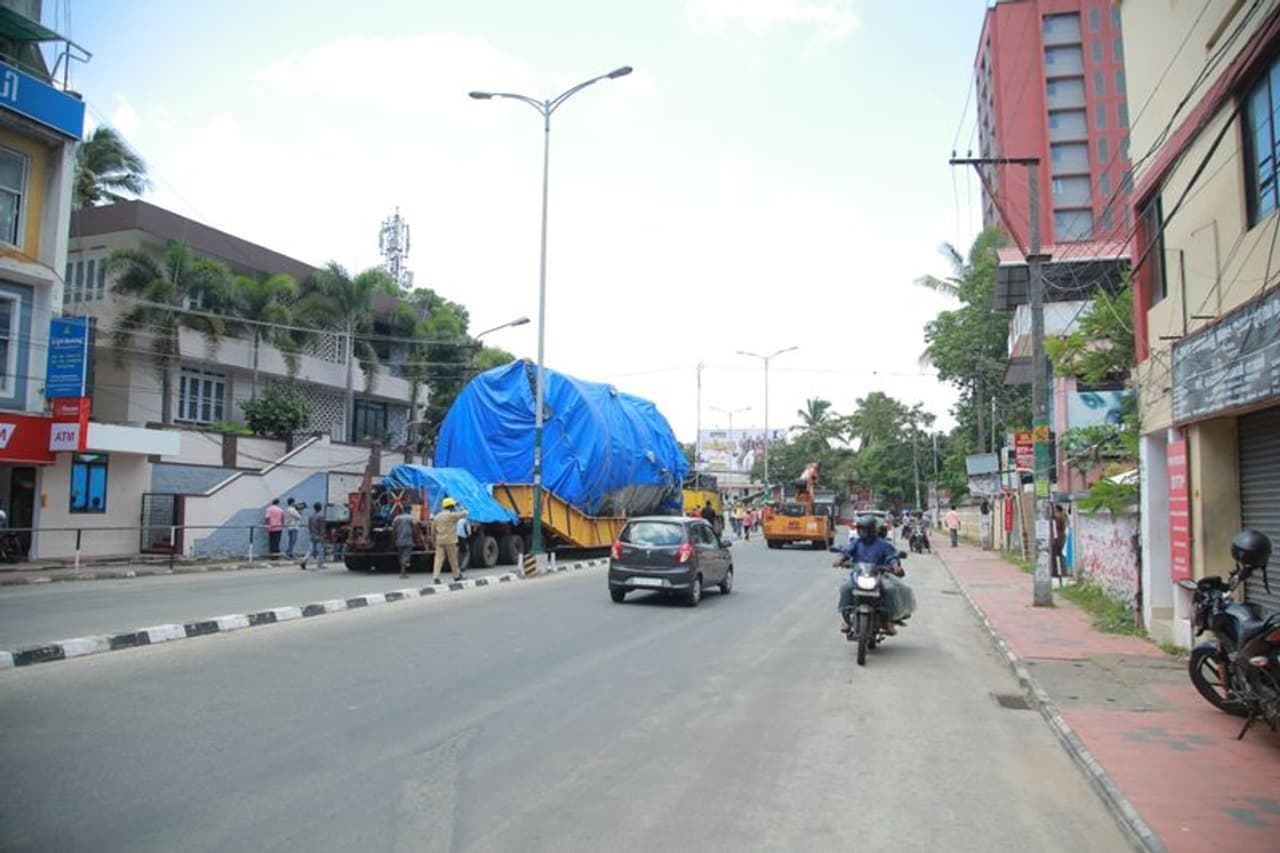 ഒരു വര്ഷം മുമ്പാണ് മുംബൈയിലെ അംബര്ബാദില് നിന്നും യന്ത്രഭാഗവുമായി വാഹനം യാത്രതിരിച്ചത്. 70 ടണ്ണാണ് യന്ത്രത്തിന്റെ ഭാരം.