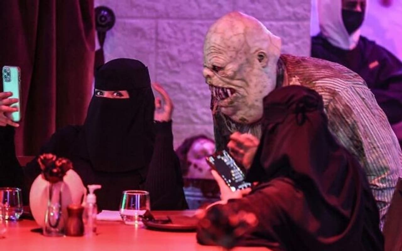പ്രേതങ്ങൾക്കൊപ്പം ഇരുന്ന് ഭക്ഷണം കഴിക്കാൻ ആഗ്രഹമുണ്ടോ? എങ്കിൽ ഇതാ അങ്ങനെയൊരു സ്ഥലമുണ്ട്...റിയാദിലെ ഷാഡോസ് റെസ്റ്റൊറന്റിൽ പോയാൽ പേടിപ്പിക്കുന്ന ചില ഭീകര രൂപങ്ങളെ കാണാം. തലയോട്ടി, അസ്ഥികൂടം, സോംബി, വാംപയർ, രക്തത്തിൽ കുളിച്ച മറ്റ് ഭീകരരൂപങ്ങൾ ഇവയെല്ലാം ഈ റെസ്റ്റോറന്റിലുണ്ട്.ഭക്ഷണം കഴിക്കുന്നതിനിടെ സോംബിയകൾ ഇടയ്ക്കിടെ ഭയപ്പെടുത്തുമെന്ന് ഹോട്ടൽ അധികൃതർ പറയുന്നു.