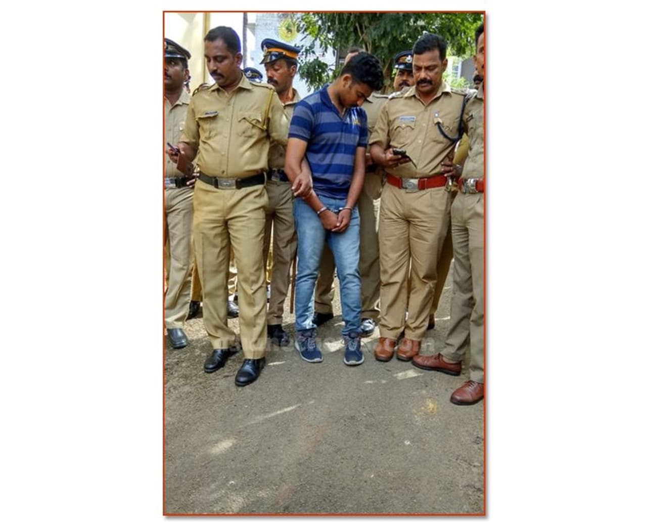 അമ്പൂരി രാഖി കൊലക്കേസിന്റെ തെളിവെടുപ്പിനായി അഖിലിനെ അമ്പൂരിയില് എത്തിച്ചപ്പോള്.