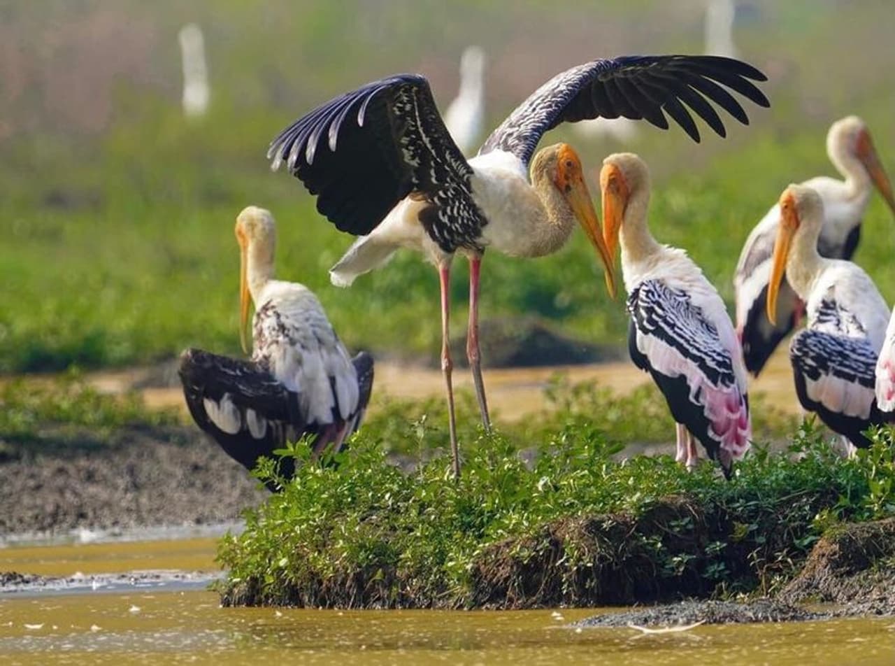 കഴിഞ്ഞ ആഴ്ചയോടെയാണ് വര്ണ്ണക്കൊക്കുകള് (painted stork) സംഘങ്ങളായി പുഞ്ചക്കരിയിലെത്തി തുടങ്ങിയത്. സ്റ്റോർക്ക് കുടുംബത്തിലെ ഒരു വലിയ കൊക്കാണ് പെയിന്റഡ് സ്റ്റോർക്ക് അഥവാ വര്ണ്ണക്കൊക്ക്. അതോടൊപ്പം അസംഖ്യം വെള്ളക്കൊക്കുകളും ഇവിടെയുണ്ട്.