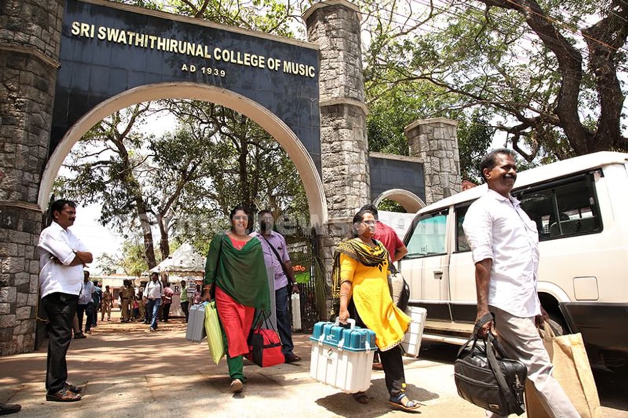 തിരുവനന്തപുരം സംഗീത കോളേജില് നിന്ന് പോളിങ് സാമഗ്രികള് ഏറ്റുവാങ്ങിയ ശേഷം ബൂത്തുകളിലേക്ക് പോകുന്ന ഉദ്യോഗസ്ഥര്