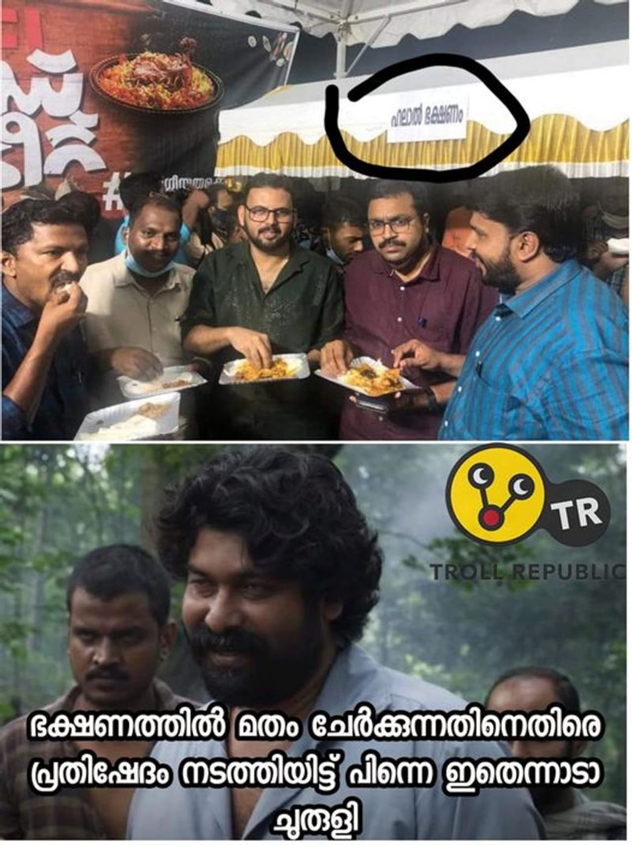 - halal food troll : 'പല തെരുവില് പല ഭക്ഷണം'; ഡിവൈഎഫ്ഐയുടെ ഫുഡ് സ്ട്രീറ്റിനെതിരെ ട്രോള്
