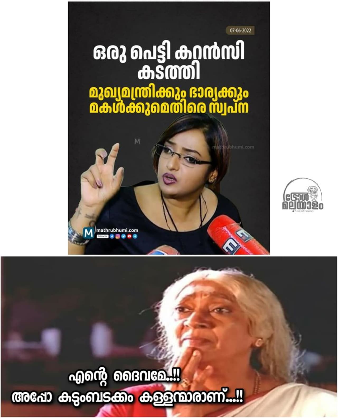 സ്വർണക്കടത്തുമായി ബന്ധപ്പെട്ട കള്ളപ്പണ കേസിൽ സ്വപ്ന സുരേഷിന്റെ രഹസ്യമൊഴി രേഖപ്പെടുത്താന് തുടങ്ങിയത് രണ്ട് ദിവസം മുമ്പായിരുന്നു. സാമ്പത്തിക കുറ്റകൃത്യങ്ങളുമായി ബന്ധപ്പെട്ട എറണാകുളത്തെ പ്രത്യേക കോടതിയാണ് സ്വപ്നയുടെ രഹസ്യമൊഴി രേഖപ്പെടുത്തിയിരുന്നത്. എന്നാല്, രഹസ്യമൊഴി നല്കിയ സ്വപ്ന തന്നെ പിന്നീട് മാധ്യമങ്ങളെ കാണുകയും ചില വെളിപ്പെടുത്തലുകള് നടത്തുകയും ചെയ്തു. അതില് മുഖ്യമന്ത്രിക്കും അദ്ദേഹത്തിന്റെ കുടുംബത്തിനും എതിരെ അതിഗുരുതരമായ ആരോപണങ്ങളും ഉണ്ടായിരുന്നു. സ്വർണക്കടത്ത് കേസിൽ മുഖ്യമന്ത്രിയുടെ പേര് പറയാൻ അന്വേഷണ ഏജൻസി സമ്മർദ്ദം ചെലുത്തിയെന്നായിരുന്നു കേസിന്റെ ആദ്യ കാലത്ത് സ്വപ്ന പറഞ്ഞിരുന്നതായി മാധ്യമങ്ങളില് വന്നത്. എന്നാല് ജയിലിൽ നിന്ന് പുറങ്ങിയ ശേഷം പൊലീസ് സമ്മർദ്ദം ചെലുത്തിയത് കൊണ്ടാണെന്ന് താന് അങ്ങനെ പറഞ്ഞതെന്ന് സ്വപ്ന തിരുത്തി. പിന്നീട് ഇപ്പോഴാണ് സ്വപ്ന സുരേഷ് ആദ്യമായി മുഖ്യമന്ത്രിക്കും അദ്ദേഹത്തിന്റെ കുടുംബത്തിനും എതിരെ തിരിയുന്നത്. തൃക്കാക്കരയിലെ കൊണ്ട് പിടിച്ച പ്രചാരണത്തിനൊടുവില് ദയനീയ പരാജയം നേരിട്ടതിനെ തുടര്ന്ന് മാധ്യമങ്ങള്ക്ക് മുഖം നല്കാതെ നടക്കുകയായിരുന്നു മുഖ്യമന്ത്രി. അതിനിടെ ഉയര്ന്ന ഗുരുതര ആരോപണം രാഷ്ട്രീയ അജണ്ടയുടെ ഭാഗമാണെന്നും ഈ അജണ്ട ജനങ്ങള് തള്ളിയതാണെന്നും മുഖ്യമന്ത്രിയും അവകാശപ്പെട്ടു. സംഗതി ഏന്തായാലും കോണ്സുലേറ്റിലിറക്കിയ ബിരിയാണി ചെമ്പ് ട്രോളന്മാന്മാര്ക്ക് പെരുത്ത് ഇഷ്ടായി. കാണാം ആ ചെമ്പ് ട്രോള് വിശേഷങ്ങള്.