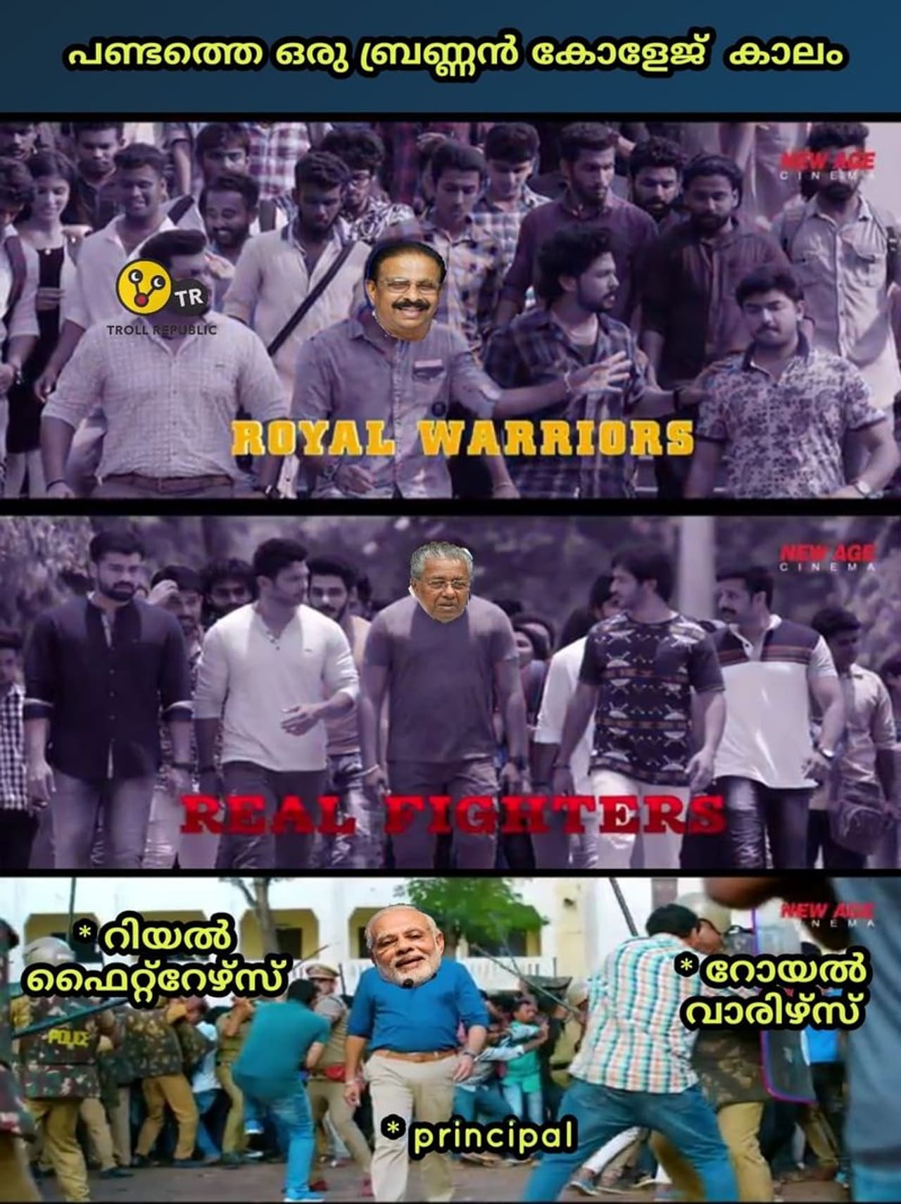 കൊവിഡ് രോഗാണുവിന്റെ രണ്ടാം തരംഗത്തെ തുടര്ന്ന് കേരളം അടഞ്ഞ് കിടക്കുന്നതിനിടെയാണ് മുഖ്യമന്ത്രി പിണറായി വിജയന് രണ്ടാമതും മുഖ്യമന്ത്രിയായി സത്യപ്രതിജ്ഞ ചെയ്ത് അധികാരമേറ്റത്. തൊട്ട് പുറകെ കെപിസിസി പ്രസിഡന്റായി കെ സുധാകരനും അധികാരമേറ്റു. കൊവിഡ് രോഗവ്യാപനം കുറഞ്ഞ് കേരളം നിയന്ത്രിതമായി തുറന്ന് കൊടുക്കുന്നതിനിടെയാണ് കെ സുധാകരന്റെ ഒരു അഭിമുഖം പുറത്തിറങ്ങിയത്. അതില് പണ്ട് പണ്ട്... ബ്രണ്ണനിലെ ക്യാമ്പസ് കാലത്ത് താന് പിണറായി വിജയനെ ഒറ്റ ചവിട്ടിന് വീഴ്ത്തിയ വീരസ്യം കെ സുധാകരന് പറഞ്ഞതായി പ്രസിദ്ധീകരിച്ചു. കൊവിഡിനെ തുടര്ന്ന് ഏതാണ്ടെല്ലാ ദിവസം വൈകീട്ട് നടക്കുന്ന പതിവ് വാര്ത്താ സമ്മേളനത്തില് മുഖ്യമന്ത്രി പിണറായി വിജയന്, കെ സുധാകരനെ തുരുത്തി. തന്റെ ഇരുകൈകളുമുപയോഗിച്ചുള്ള ഒറ്റ ആക്ഷനിലും 'ആരാടാ ഇത് ? കൊണ്ട് പോകടാ ഇവനെ' എന്ന തന്റെ വാക്കുകളിലുമാണ് അന്നത്തെ സംഘര്ഷം ഒഴിവായതെന്ന് മുഖ്യമന്ത്രി തിരിച്ചടിച്ചു. അദ്ദേഹം ഒരു മുഴം മുന്കൂട്ടിയെറിഞ്ഞു. തന്റെ മക്കളെ തട്ടികൊണ്ട് പോകാനും സുധാകരന് പദ്ധതിയിട്ടിരുന്നെന്ന്. തൊട്ട് പുറകെ ബ്രണ്ണന് കോളേജിലെ ആ പഴയ മുറ്റത്ത് നിന്ന് കുറച്ച് പേര് എഴുന്നേറ്റു വന്നു. ചിലര് പണ്ട് താനാണ് ബോംബെറിഞ്ഞതെന്ന് പറഞ്ഞു. മറ്റ് ചിലര് താന് വെട്ട് തടുത്തെന്നും വെടിവെച്ചെന്നുമൊക്കെ വെളിപ്പെടുത്തിത്തുടങ്ങി. അപ്പോഴാണ് ട്രോളന്മാരുമുണര്ന്നത്. കൊവിഡിനെ തുടര്ന്ന് ശാന്തമായി കിടന്ന അന്തരീക്ഷത്തിലേക്ക് ആരാണ് പടക്കമെറിഞ്ഞതെന്ന് അന്വേഷിച്ച് പോയി ചിലര്. പുതുപ്പള്ളിയിലാണ് ഒറ്റുകാരെന്ന് അവര് പതം പറഞ്ഞു. അതിനിടെ ഞാന് കേളേജിലൊക്കെ പോയായിരുന്നു കേട്ടോ എന്ന് ചിലര് അങ്കത്തട്ടിലേക്ക് എത്തി നോക്കി, എറ് വാങ്ങി. എല്ലാം കണ്ടും കേട്ടും ബ്രണ്ണന് സായിപ്പ് 'കോളേജ് പണിയാന് നിന്ന കാലത്ത്, തനിക്കെന്ത് കൊണ്ട് വാഴവെക്കാന് തോന്നിയില്ലെന്ന്' മകളിലിരുന്ന് പരിതപിക്കുന്നെന്ന് ചിലര്. മറ്റ് ചിലര് ജാലിയന് കാണാരേട്ടനും ബ്രണ്ണനില് നിന്നാണെന്ന് കണ്ടെത്തി. അക്കാലത്തും കോളേജില് ചായക്കടയുണ്ടായിരുന്നെന്ന് മറ്റ്ചിലര് അടക്കം പറഞ്ഞു. കാണാം സുധാകരന് Vs പിണറായി വാക്ക് പയറ്റും ട്രോളുകളും.