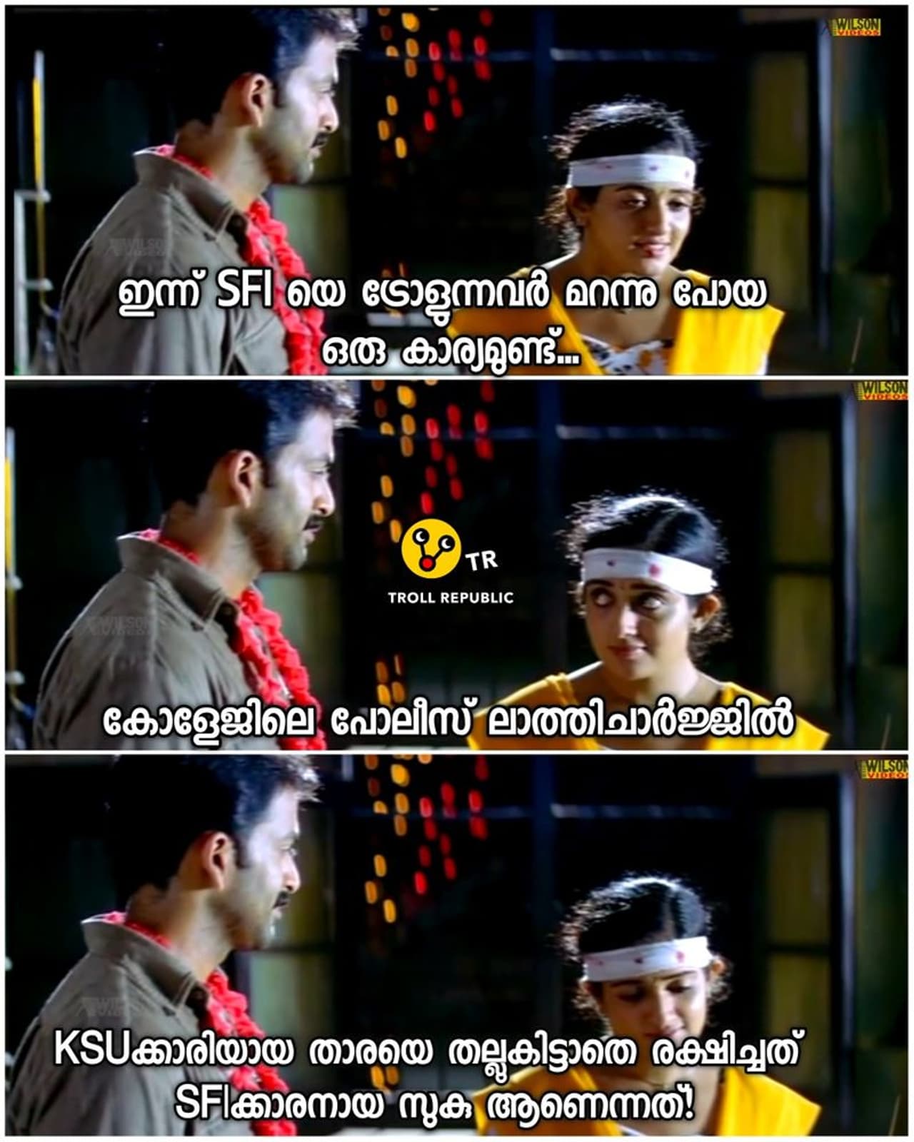 - പുരോഗമനപരമായി ചിലത് പറഞ്ഞാല് തെറ്റാണോ ഗയ്സ് ? കാണാം ചില വിദ്യാര്ത്ഥി രാഷ്ട്രീയ ട്രോളുകള്