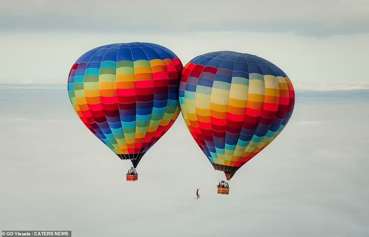 6,100 അടി ഉയരത്തിൽ പറക്കുന്ന രണ്ട് ബലൂണുകള്ക്കിടയില് ഒരു 'മേഘ നടത്തം'