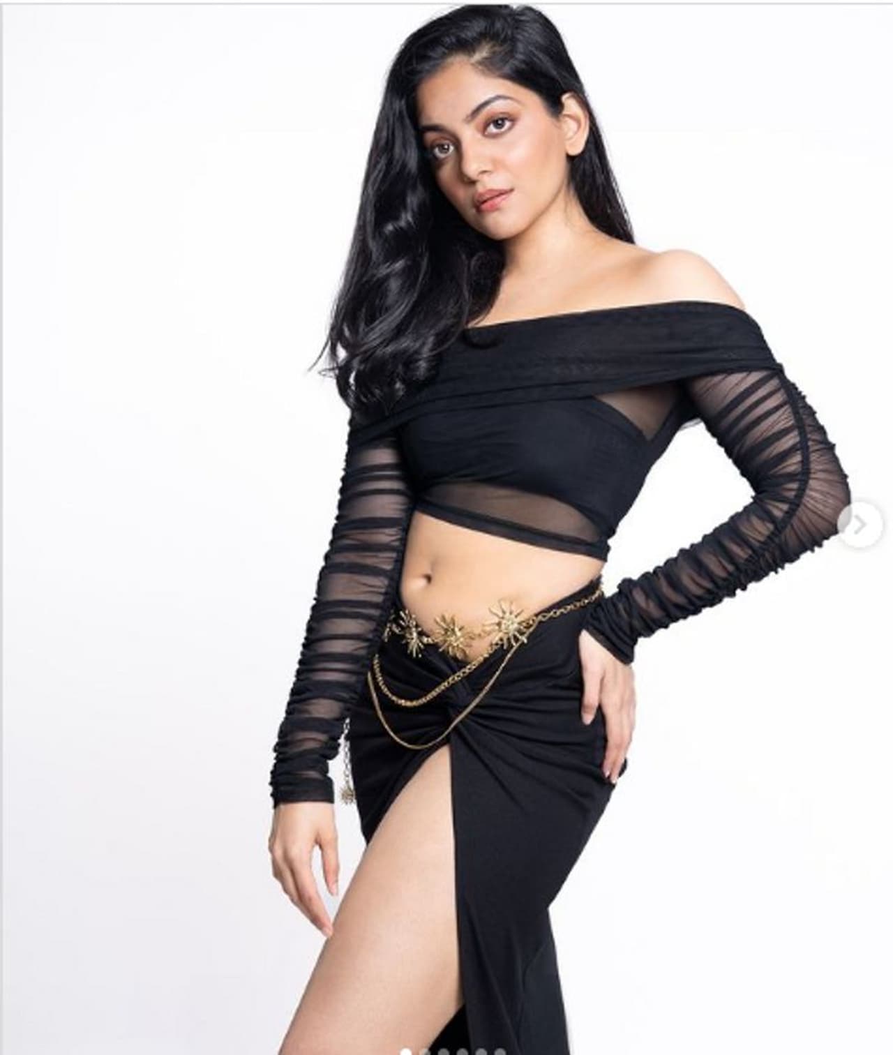 ബ്ലാക് നിറത്തിലുള്ള വസ്ത്രമണിഞ്ഞ് വന് ഗ്ലാമറസ് ലുക്കിലുള്ള ഫോട്ടോസ് ആണ് അഹാന കൃഷ്ണ പങ്കുവച്ചിരിക്കുന്നത്.