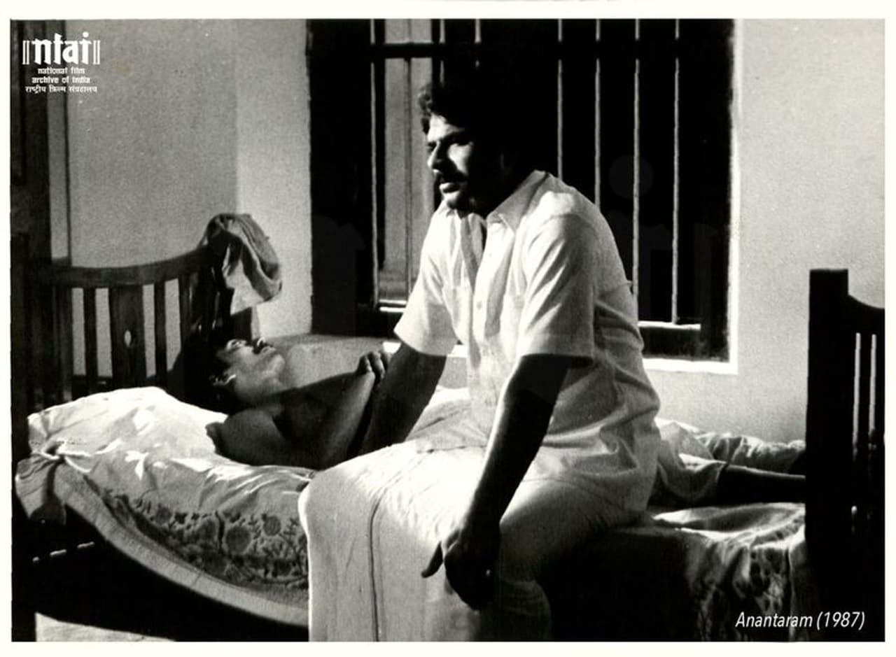 <p><strong>അനന്തരത്തിലെ ബാലു</strong></p><p>അടൂര് ഗോപാലകൃഷ്ണന്റെ ഫിലിമോഗ്രഫിയിലെ വ്യത്യസ്ത ചിത്രം. പുറത്തിറങ്ങിയത് 1987ല്. അജയന് എന്ന നായക കഥാപാത്രമായി അശോകന് എത്തിയ ചിത്രത്തില് ബാലു എന്ന കഥാപാത്രത്തെയാണ് മമ്മൂട്ടി അവതരിപ്പിച്ചത്. അനാഥനായ അജയനെ എടുത്തുവളര്ത്തുന്ന 'ഡോക്ടറുടെ' മകനായിരുന്നു ബാലു. അജയനൊപ്പമുള്ള ബാലുവിന്റെ ഒരു രംഗമാണ് ചിത്രത്തില്.</p>