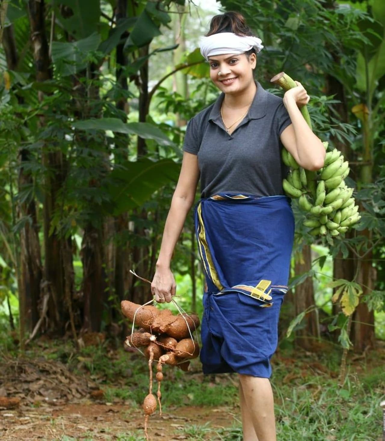“വാഴക്കുലയേന്തിയ കര്ഷകസ്ത്രീ“, എന്നാണ് ചിത്രങ്ങൾ പങ്കുവച്ച് കൊണ്ട് സുബി കുറിക്കുന്നത്. (courtesy facebook photos)