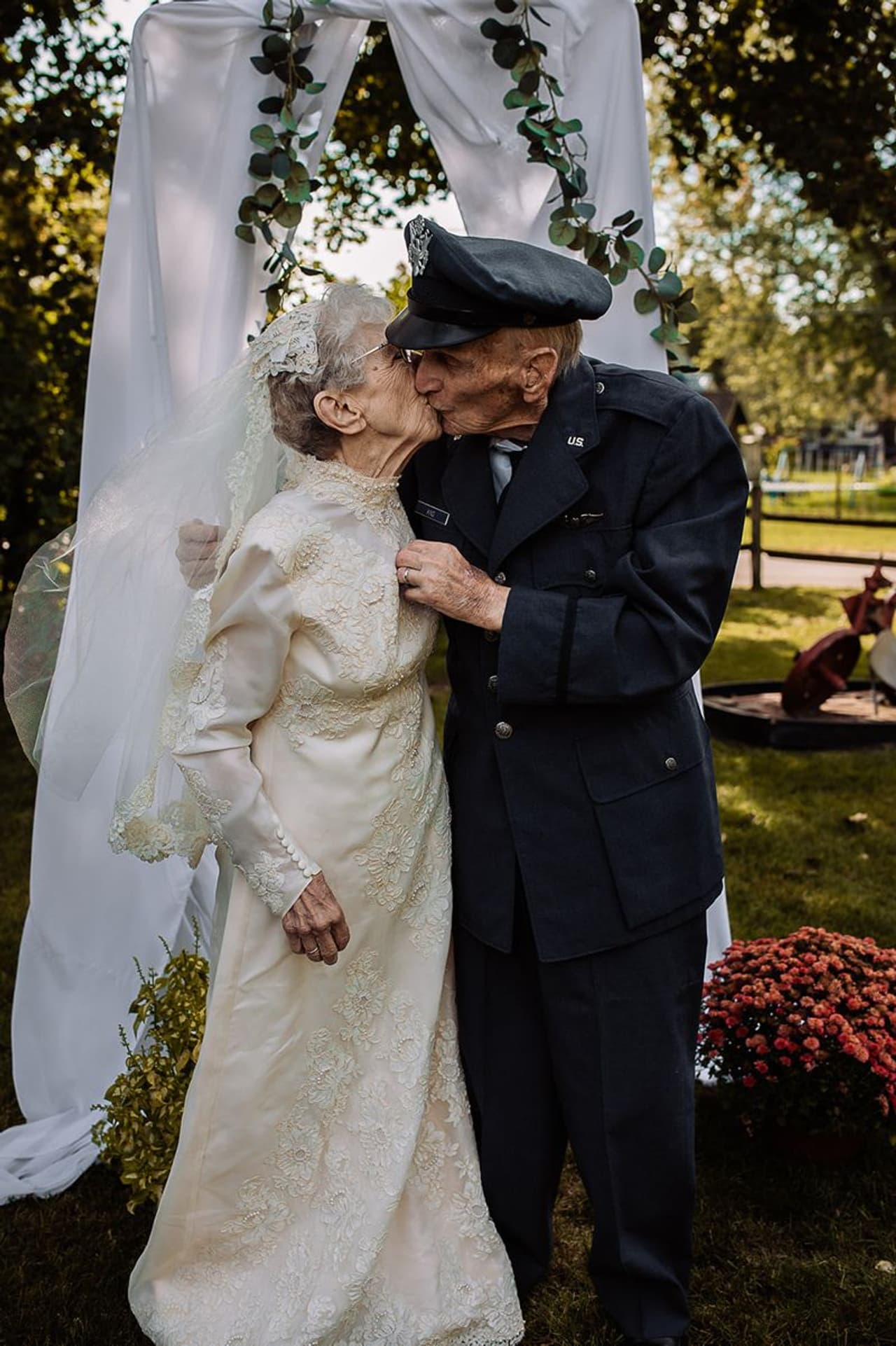 അവരുടെ ജീവിതത്തിലെ ആ മനോഹരമായ ദിവസത്തിലെ ചിത്രങ്ങളൊന്നും അവരുടെ പക്കൽ ഇല്ലെന്ന് പരിചാരക പ്രവർത്തകർ കണ്ടെത്തിയതിനെ തുടർന്നാണ്, 68 വർഷമായി അവർ താമസിക്കുന്ന വീടിന്റെ പിൻഭാഗത്തെ പൂന്തോട്ടത്തിൽ ആ വിവാഹരംഗം പുനഃസൃഷ്ടിക്കാൻ അവർ ഏർപ്പാട് ചെയ്തത്.