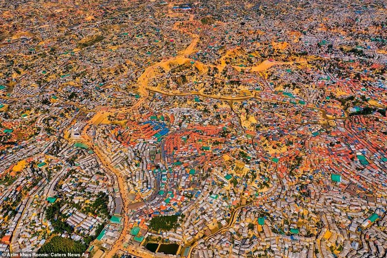 നിരയൊപ്പിച്ചും നിരയില്ലാതെയും കിടക്കുന്ന ആയിരക്കണക്കിന് വീടുകള്ക്കിടയിലൂടെ വളഞ്ഞ് പുളഞ്ഞൊഴുകുന്ന നദി പോലെ വഴികള് കാണാം. 'സ്വന്തം രാജ്യമായ മ്യാൻമറിലെ ഭയാനകമായ അക്രമങ്ങളിൽ നിന്ന് പലായനം ചെയ്യുന്നവരുടെ ആവാസ കേന്ദ്രമാണ് ചുവപ്പും പച്ചയും വെള്ളയും നിറത്തിലുളള വീടുകൾ, അല്ല കുടിലുകള്. ആയിരക്കണക്കിന് താൽക്കാലിക വീടുകൾ ഈ ചിത്രങ്ങളിൽ കാണാം,' റോണി പറയുന്നു.