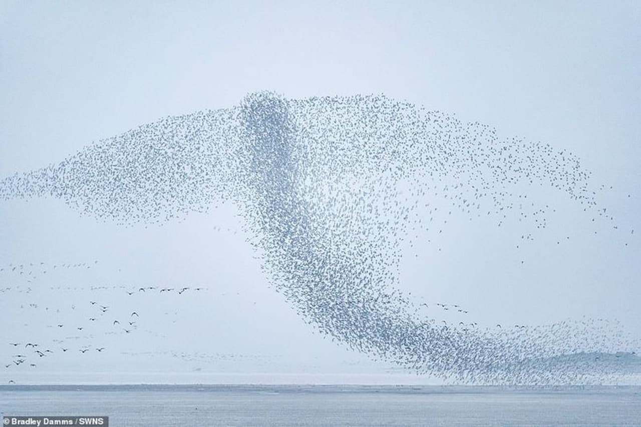 ഒറ്റ നോട്ടത്തില് ആകാശത്ത് പറക്കുന്ന തിമിംഗലമെന്ന് തോന്നും. എന്നാല് അടുത്ത നിമിഷം രൂപം മാറി മറ്റൊന്നാകും. നോർഫോക്കിലെ സ്നെറ്റിഷാമിലെ ഒരു ബീച്ചിൽ നിന്ന് അതിശയകരമായ ആ കാഴ്ച പകര്ത്തിയത് ബ്രാഡ് ഡാംസ് ആണ്. സത്യത്തില് അത് തിമിംഗലമൊന്നുമല്ല. മറിച്ച് കൂട്ടം കൂടി പറക്കുന്ന പക്ഷക്കൂട്ടമാണ്. ആയിരക്കണക്കിന് ചിലപ്പോള് അതിലും മേലെയുള്ള പക്ഷി കൂട്ടങ്ങള് ഒന്നിച്ച് ആകാശത്ത് പറന്നുയരുമ്പോള് അവയുണ്ടാക്കുന്ന രൂപങ്ങള്ക്ക് ചിലപ്പോള് തിമിംഗലങ്ങളുടെ രൂപം കാണുന്നു. മറ്റ് ചിലപ്പോള് വേറെ ചില രൂപങ്ങള്.