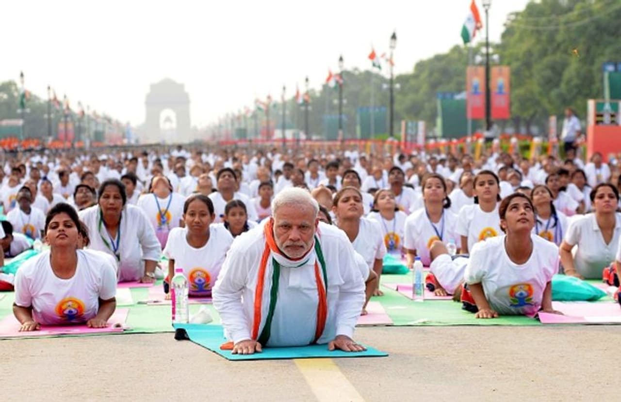 2015 ജൂൺ 21 ന് ന്യൂ ദില്ലിയിൽ നടന്ന അന്താരാഷ്ട്ര യോഗ ദിനത്തിൽ ഇന്ത്യന് പ്രധാനമന്ത്രി നരേന്ദ്ര മോദി, മാസ് യോഗ സെഷൻ നയിക്കുന്നു. ലോകം യോഗയെ ഏറ്റെടുക്കുന്നതില് ഇന്ത്യയിലെ യോഗാ ദിനാചരണങ്ങള്ക്ക് വലിയ സ്വാധീനമുണ്ട്.