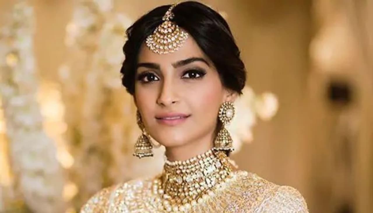 ചുവപ്പുനിറത്തിലുള്ള ഒരു ദുൽഹൻ ലെഹംഗ അണിഞ്ഞ് അതിനു ചേരുന്ന പല അടുക്കുകളുള്ള ഒരു ജൂവലറിയാണ് സോനം തന്റെ വിവാഹച്ചടങ്ങിന് ധരിച്ചത്. ധരിച്ച സ്വർണാഭരണങ്ങളിലുണ്ടായിരുന്ന ചുവന്ന കല്ലുകൾ അവയ്ക്ക് മോടിയേറ്റി. ഗോൾഡ് കുന്ദൻ ടൈപ്പ് നെക്ക് ലേസുകളാണ് അവർ ധരിച്ചത്. ആദ്യത്തെ നെക്ക് ലേസ് ഒരു കനമുള്ള ചോക്കർ ആയിരുന്നു. പിന്നെ വിശദമായ രണ്ടാമതൊരു നെക്ക് ലേസ് കൂടി. പിന്നെ അതും കഴിഞ്ഞ് ഒരു നീണ്ട കുന്ദൻ മാല കൂടി. ഓരോന്നും അനന്യമായ ഡിസൈൻ, എല്ലാം ചേർന്ന് ഒന്നിച്ചുനിന്നപ്പോൾ അതിന്മറ്റൊരു ഭംഗിയുമുണ്ടായി. ഇതിനൊക്കെപ്പുറമെ, സോനം തന്റെ വസ്ത്രങ്ങൾക്ക് ചേരുന്ന ഒരു മാഥാ പട്ടിയും ധരിക്കുകയുണ്ടായി.