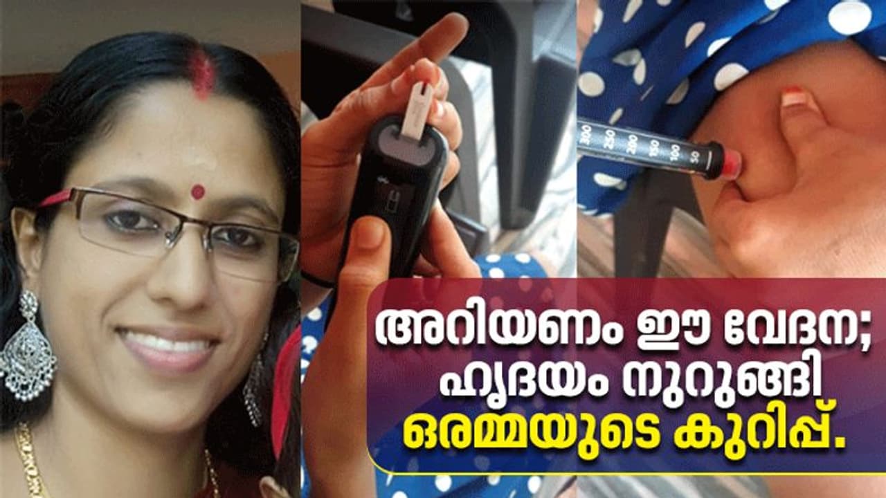 ലോകത്ത് ഷുഗറിന്റെ അളവ് നോക്കാനുള്ള അതിനൂതനമായ സാങ്കേതിക വിദ്യകളുണ്ട്. വീട്ടിലെ അഞ്ച് പേര്ക്ക് ഒരേസമയം രോഗിയുടെ ഷുഗര് അളവ് കാണിക്കുന്ന ഉപകരണങ്ങളും പുറം രാജ്യങ്ങളില് ലഭ്യമാണ്. എന്നാല്, കേരളത്തില് ഇന്നും ജനിച്ചു വീഴുമ്പോൾ മുതൽ അല്ലെങ്കിൽ ഒന്നും രണ്ടും വയസ് മുതൽ ഒരു ദിവസത്തിൽ അഞ്ചും ആറും പ്രാവശ്യം ഇൻസുലിൻ ഇൻജെക്ഷൻ എടുക്കുന്ന, ഏഴു മുതൽ പത്ത് പ്രാവശ്യം വരെ കുഞ്ഞിക്കൈകളിൽ കുത്തി ചോരയെടുത്ത് ഷുഗർ നോക്കുന്ന കുഞ്ഞുങ്ങളും അമ്മമാരുമാണ് ഉള്ളതെന്നും സംസ്ഥാന ടൈപ്പ് വണ് ഡയബറ്റിക് വെല്ഫയര് സൊസൈറ്റിയുടെ കോഴിക്കോട് ജില്ലാ സെക്രട്ടറി കൂടിയായ ഷാന വിജേഷ് എഴുതുന്നു.