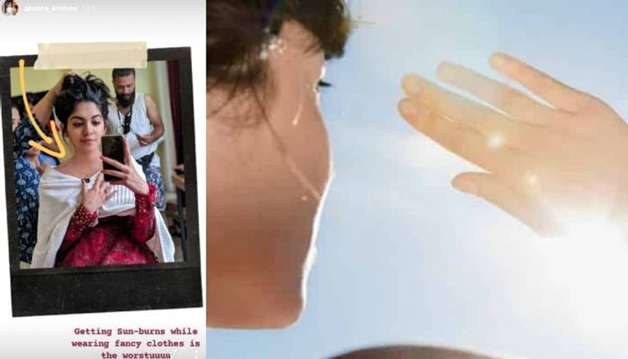 ഷൂട്ടിംഗിനിടെ സൂര്യാതപമേറ്റതിന് പരിഹാരം കാണുന്ന ചിത്രവുമായി നടി അഹാന കൃഷ്ണ. ഇന്സ്റ്റഗ്രാമിലൂടെ താരം ചിത്രം പങ്കുവച്ചത്.
